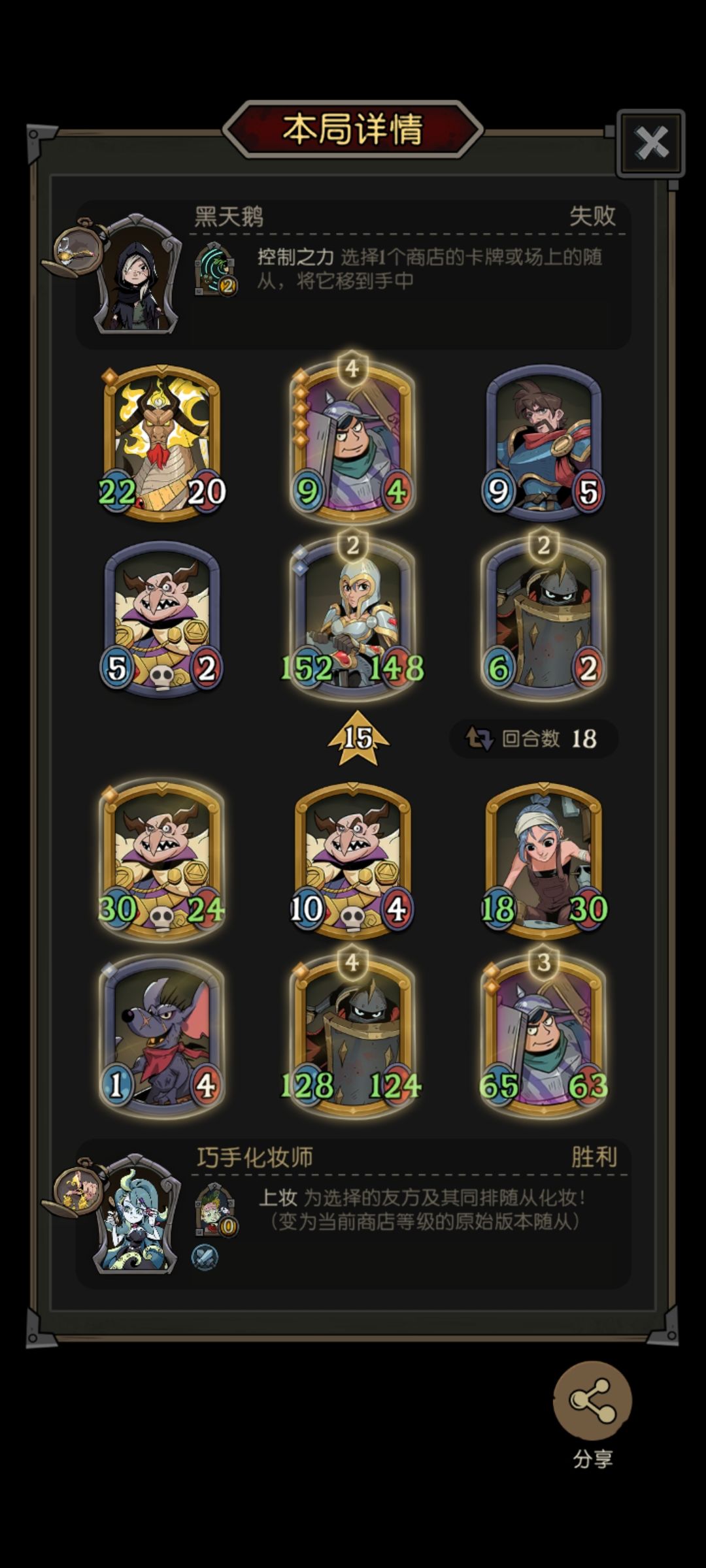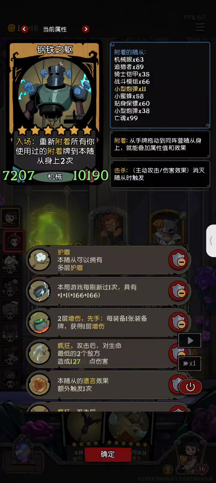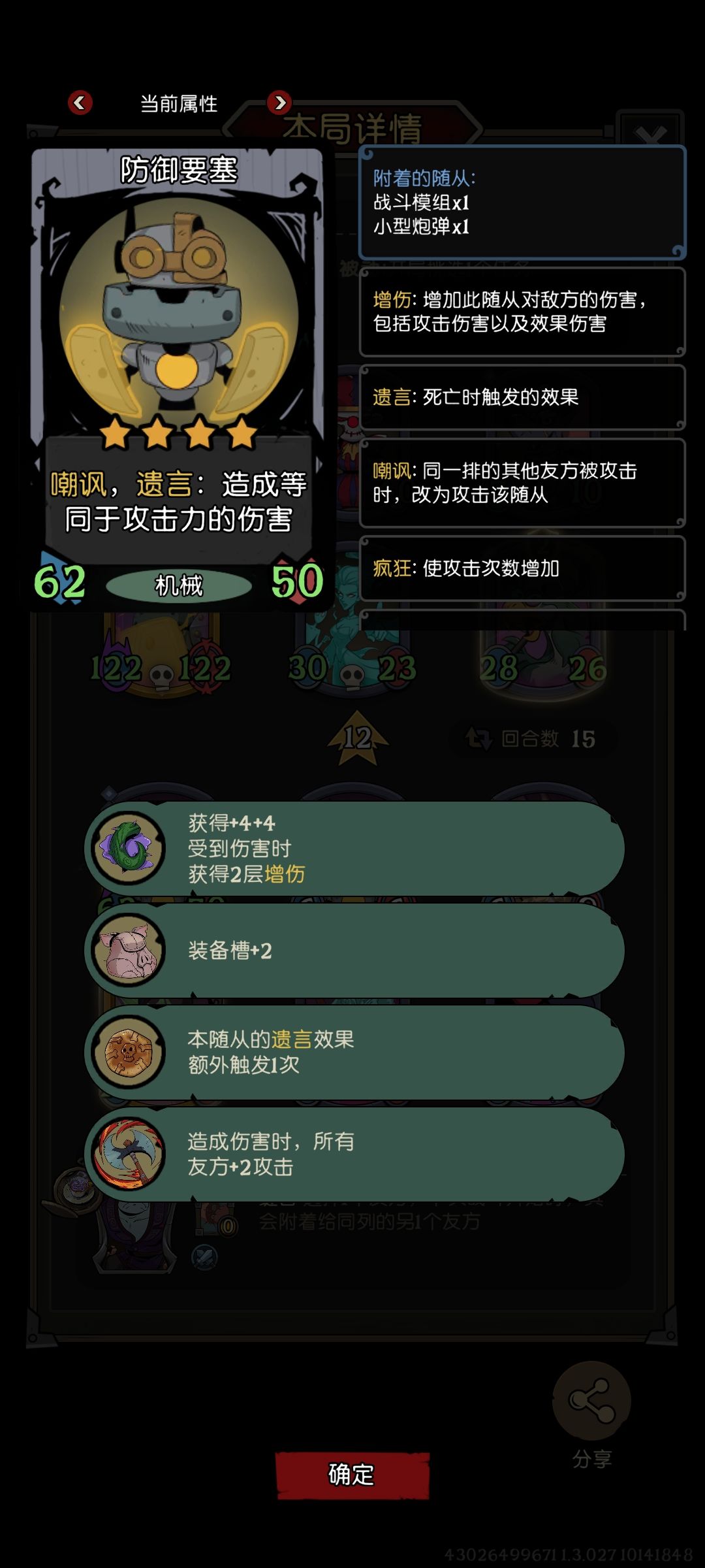 这是我打的一局,虽然赢了,但我没明白。 后来经过回放才看明白,遗言的代码优先级很有趣。 提示:要塞带了遗言+1装备