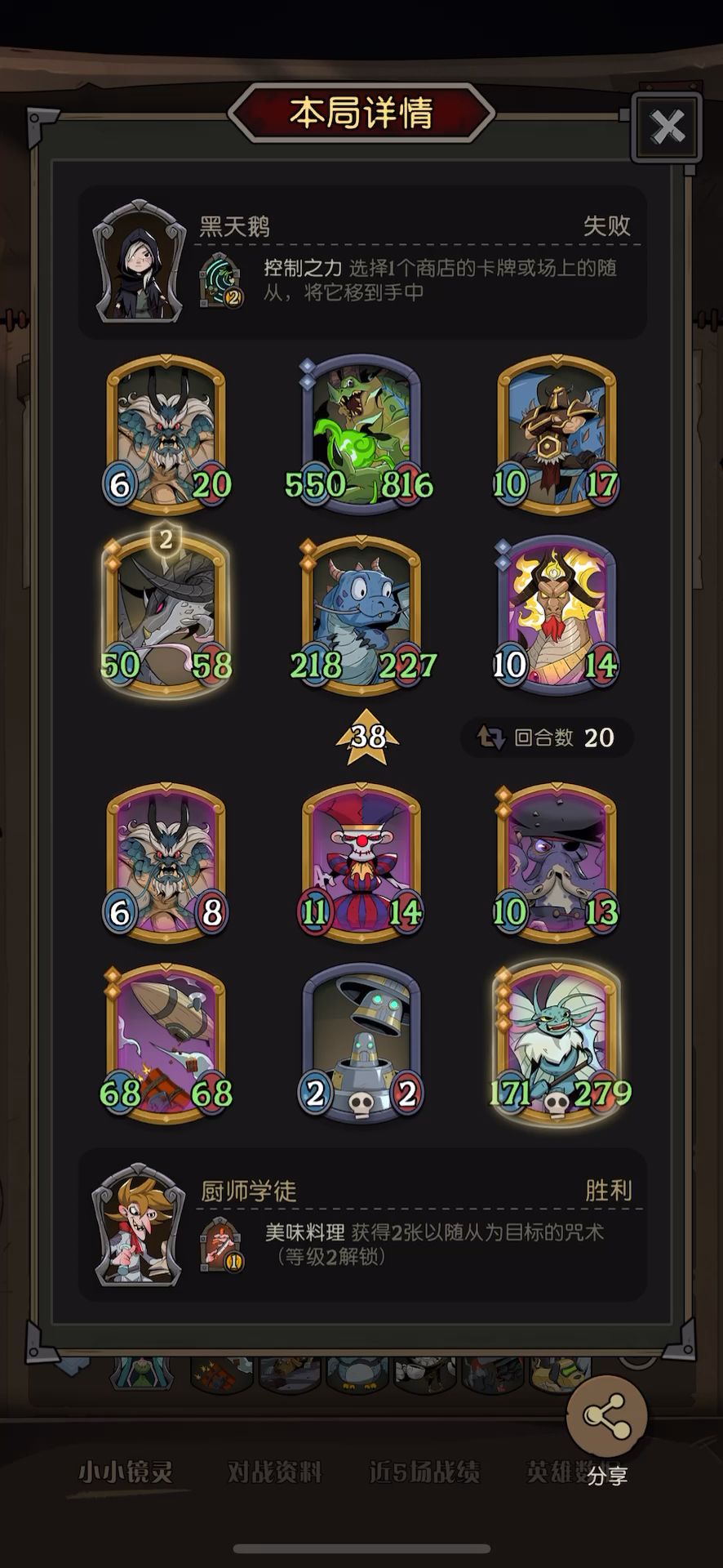 影魔开局,2本用奖券开出引路者加快发育节奏,本来这局没有追梦还在可惜没法白嫖,结果中途白嫖了化妆师的娃娃机,这时候已经有引路+导游,直接四张娃娃机一金一白,每回合稳定6张附着,运气好大部分都是机械的。泉水和红茶都是上去凑数的,中途有白嫖到了金灾厄,本来想玩套娃多头蛇召唤流,但想了想还是算了,来个刺客就一点回转余地都没有,还留了一手纯金套娃+魔女以防万一,最后一回合看打得过就都卖了。总结来说这套路可