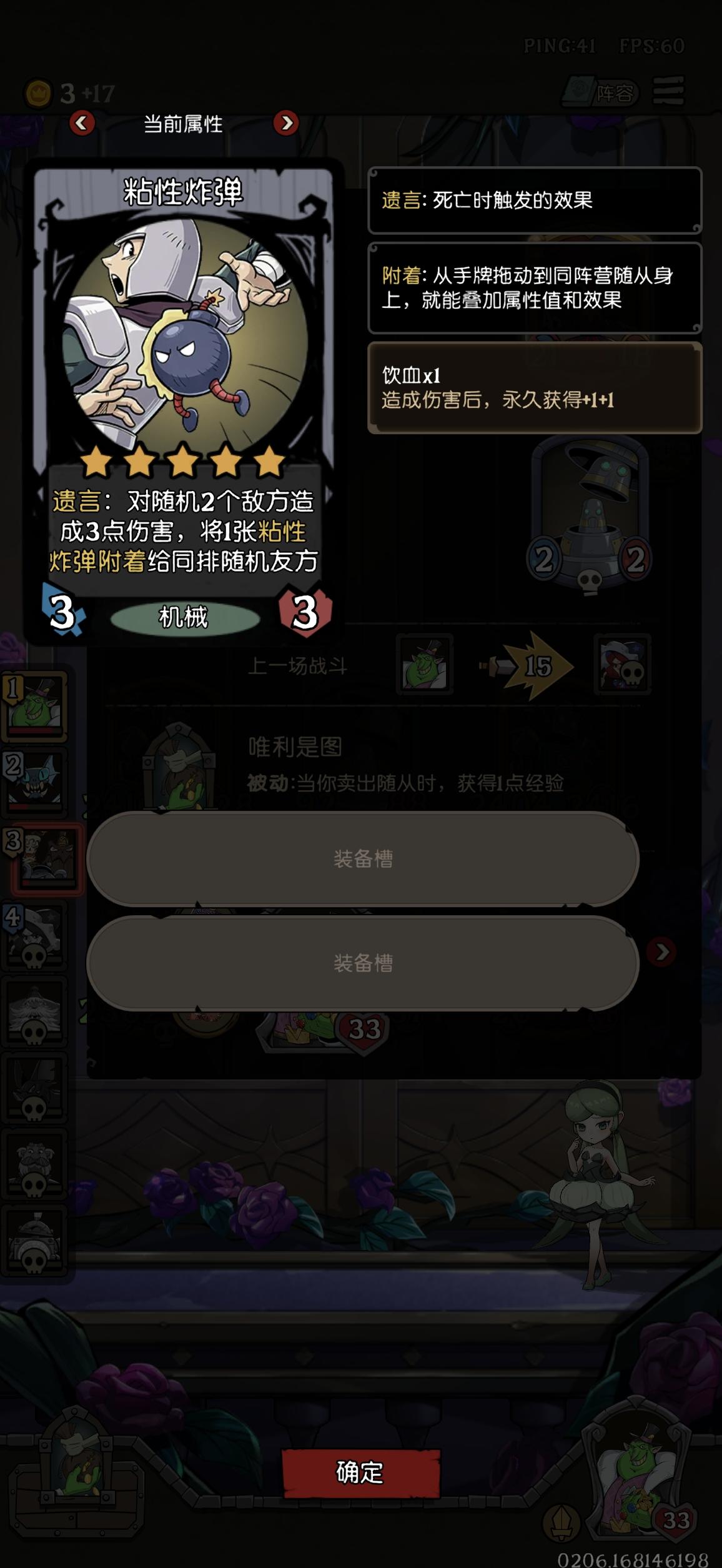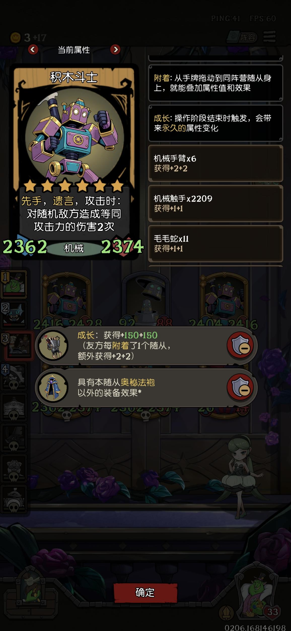 套娃肚子里只吞了100攻的积木,半决赛对面身材都有8000了,以为搞不定了,哪里想到之前随便给粘性炸弹加了个造成伤害+1+1,结果一直附身给积木,导致积木直接膨胀到600+打赢半决赛,然后决赛更搞笑,套娃里的积木出来直接变2000+头一次知道套娃里的怪还能涨身材的,回头仔细看了所有状态,发现是附身的触手加的,真神奇。。不过好像有点奇怪的是为什么粘性炸弹炸对面我的所有机械怪都
