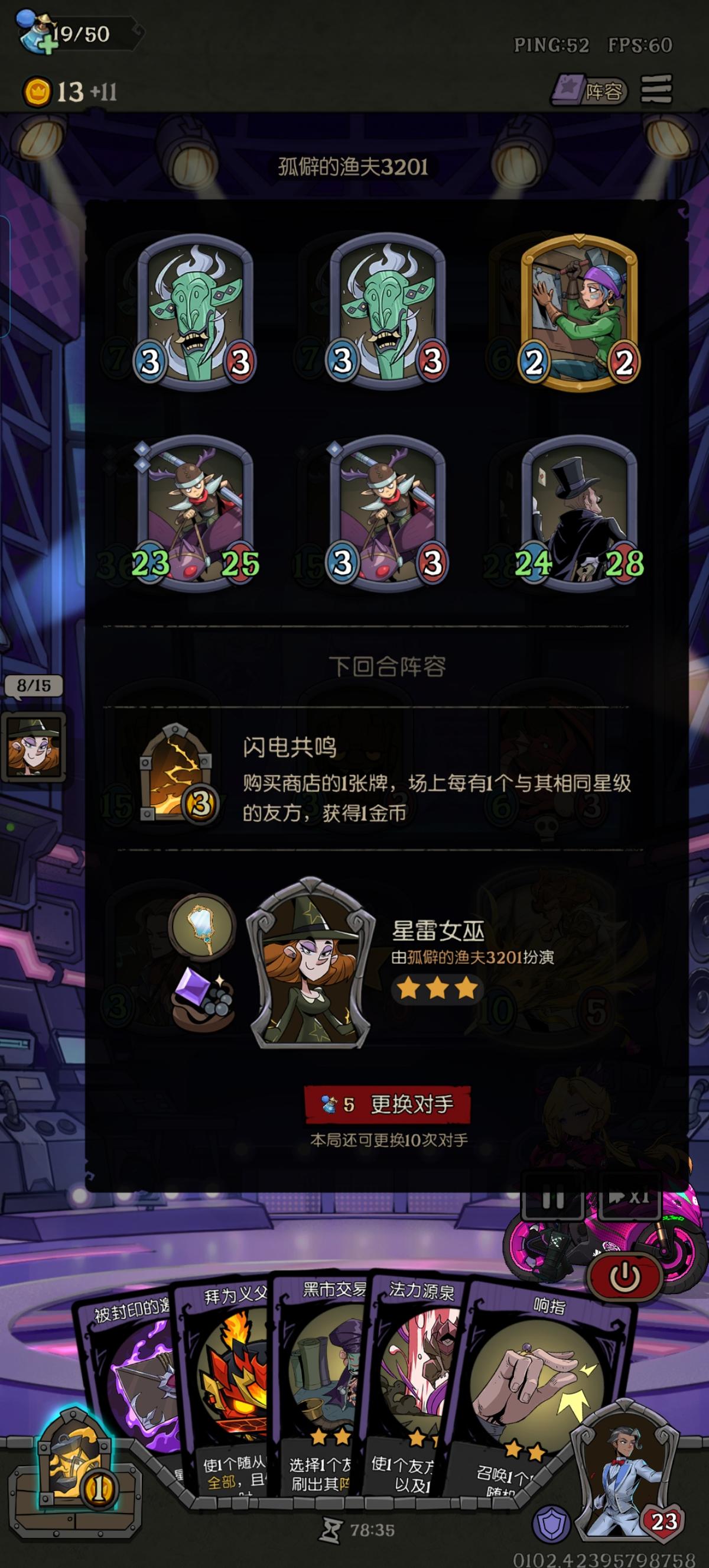 只要钱足够,无脑找咒术和装备,这就是纵火,第4的法袍被我打下去的,感觉如果他不是玩鬼应该能吃,但凡是个战士呢?不过灵魂行商确实垃圾,第6回合要花钱第8回合还要花钱,你就算给8金币这英雄的节奏也完全是烂的何况还只有6金币,这是我玩下来的感觉,太拖沓没办法拖到发力时刻,现在战士局前期什么节奏没点数吗,基本4-5回合强势英雄都铺场铺满了,如果你不买怪,那就是挨打,如果买,那就拖节奏没经济,稍稍弱势一点的