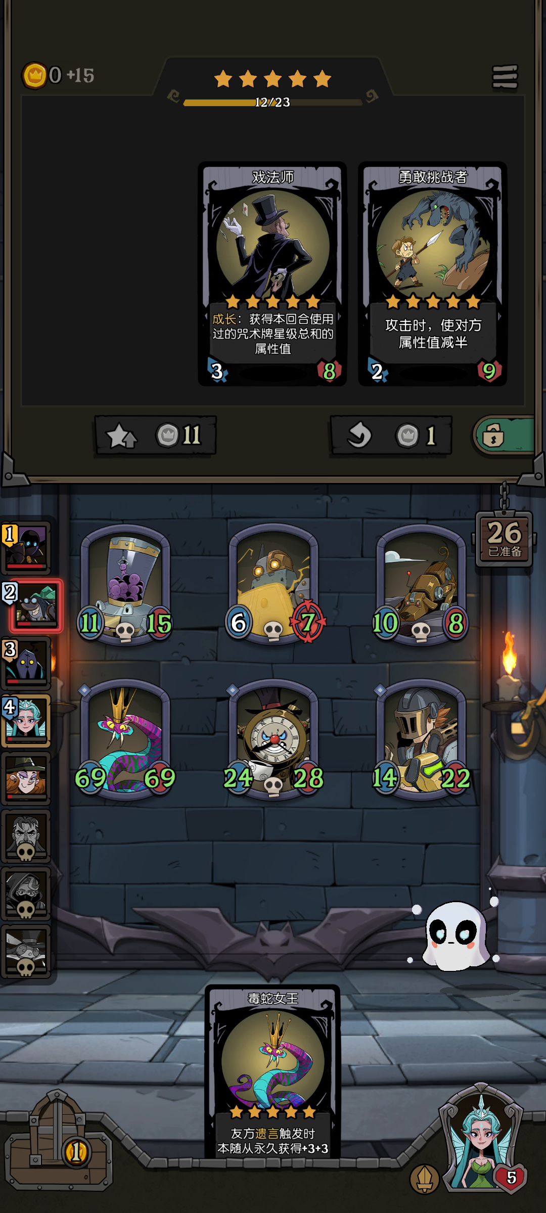 对面有精灵女王,本来想复制女伴走成长路线,不料先粘来了科学家,而后船长三连,立马锁定遗言召唤流。 干翻本体缝合怪后,还不足以吃鸡,直到贴膜女神出现,开启嘶嘶嘶贴膜之旅。 一开始对方还负隅顽抗,最后被打到没脾气,投子认负了…