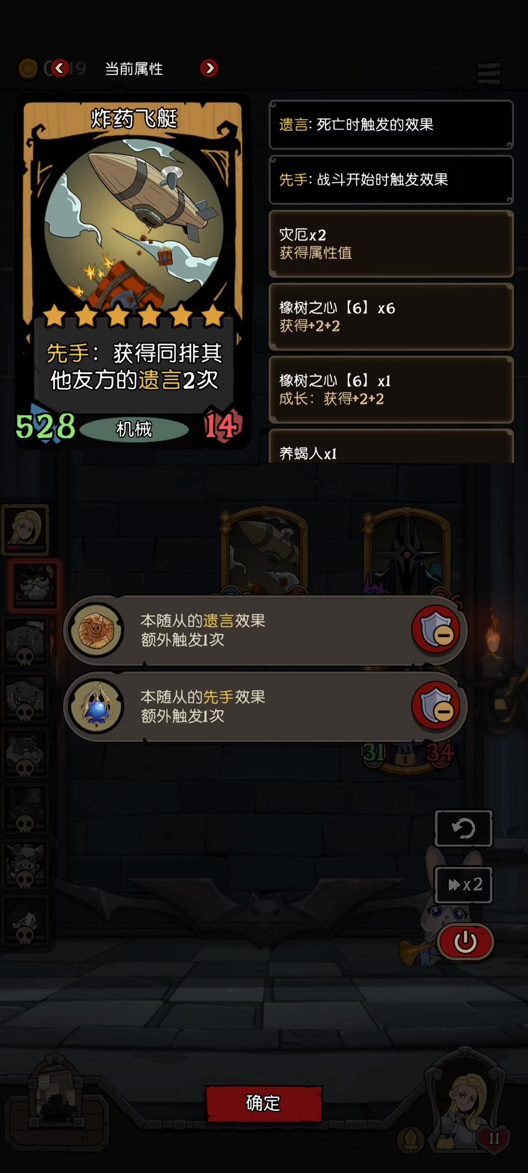 能先手结算:飞艇+先手装备是复制3次*金套娃遗言*2=6个,就是说飞艇先手触发后,拥有了召唤6个的遗言然后是遗言触发6*2(本体一次,装备一次)=12