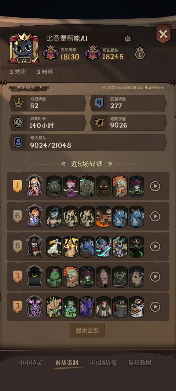 今晚的MVP颁给小鱼人! 白板小鱼人附上遗言:复制白板原始随从。加套娃,加飞艇先手翻倍,加金死灵。 前排魔女加金刺客及嘲讽,反制3巨头都上齐了,来搞心态咯,总之今晚有人睡不着咯