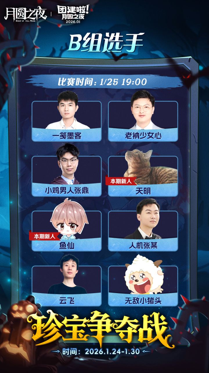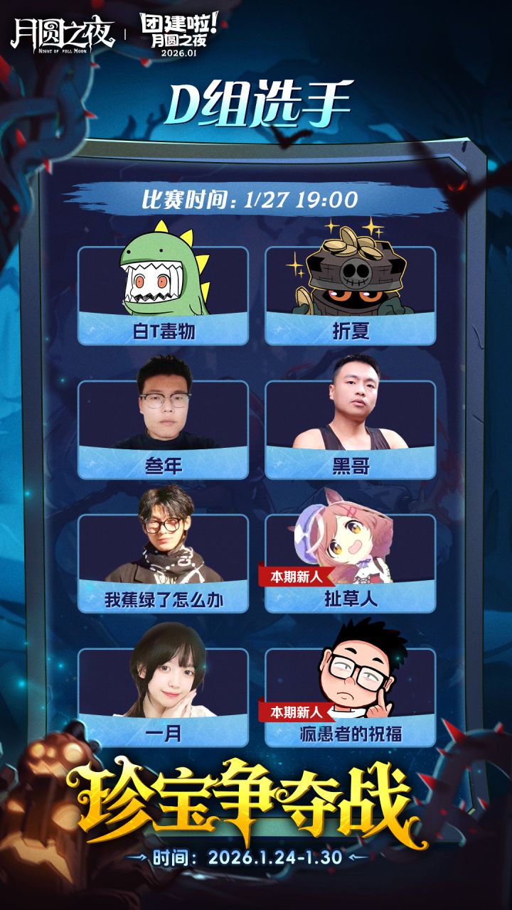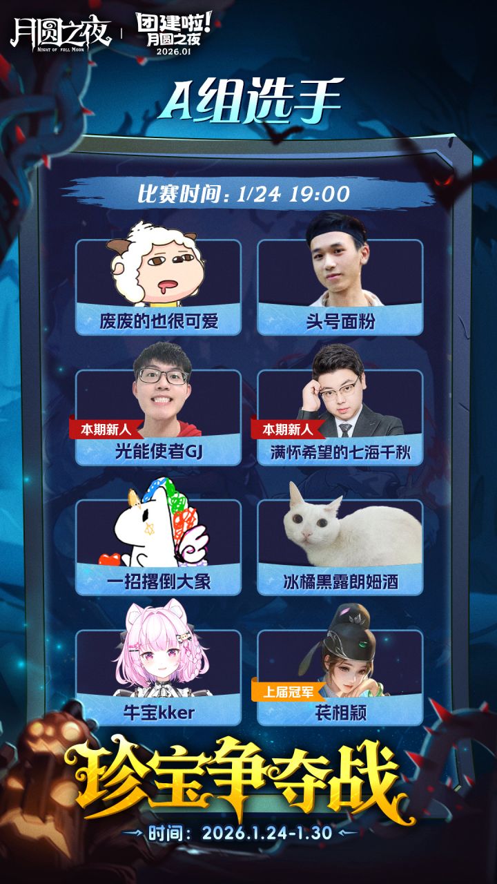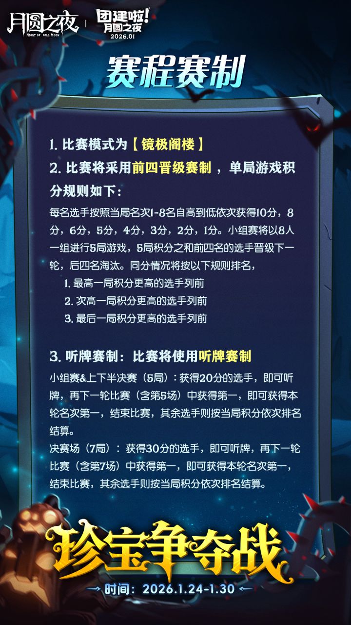 🔮S10季中镜中对决主播赛“团建啦!月圆之夜!”将于 1 月 24 日 - 1 月 30 日开启!🔮月色为幕,珍宝为引,被藏宝图召唤的冒险主播们,正踏入危机四伏的【镜极阁楼】。在积分与听牌的博弈中,谁能突破层层关卡,最终捧起象征荣耀的宝藏?🔮记得蹲守《月圆之夜》官方直播间!看主播们在牌桌上斗智斗勇,究竟谁能登顶夺宝,我们拭目以待!-更多赛事详情可查看大图~#月圆之夜10 # #月圆之夜镜中