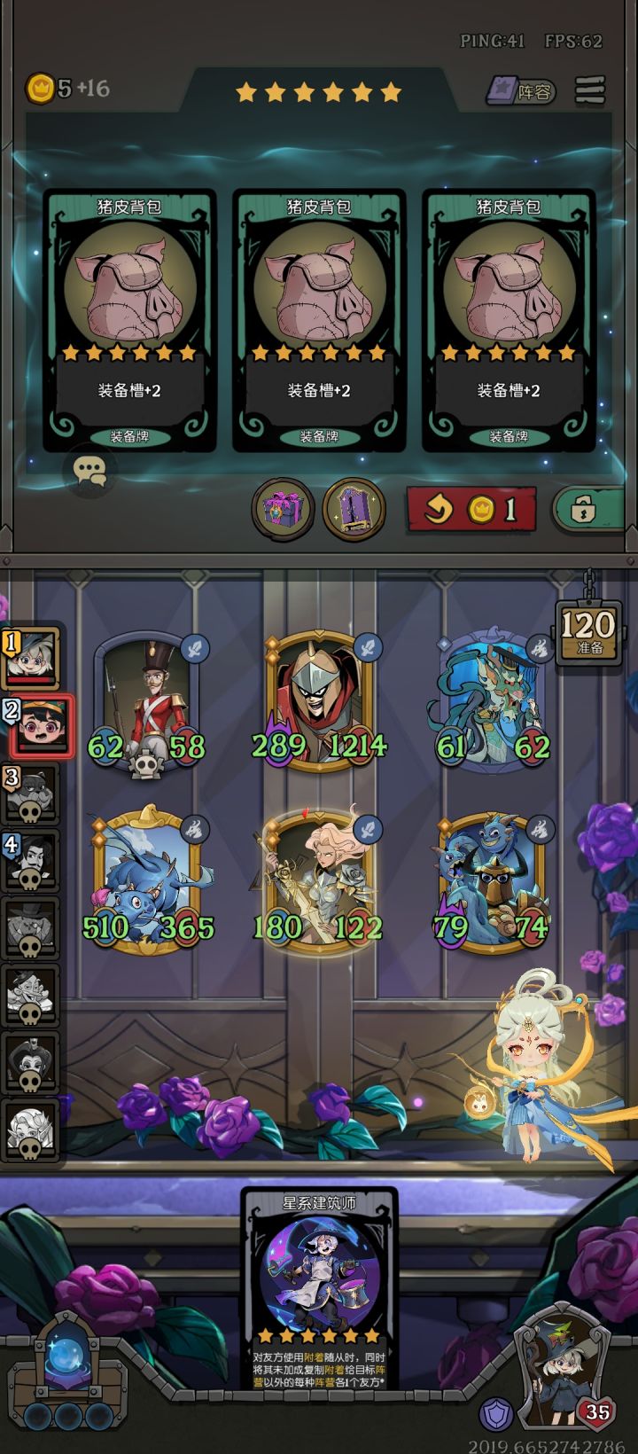 天赋就点了升三级天赋给四张牌,疯帽匠加重生机器人前期疯狂压力我方还极度缺经济,前期只能卖血上本,只有鲨鱼恶霸能抗住,前期只能靠野猪加鸽子还有遗言给附着牌的机器人提供经济从,第九回合开始对面就开始不当人了,最后没个五六万的身材根本抗不下来