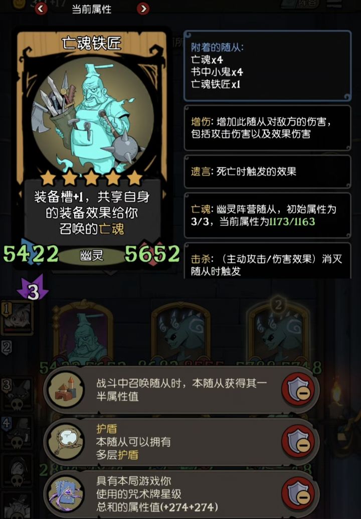 珍宝"橡皮泥":让首位附着自身原始复制,可以让亡魂铁匠的装备效果翻倍。亡魂铁匠真的是一个机制特别优秀的随从,他的效果没有不可叠加光环。见我之前贴子发的"玩具商/亡魂铁匠",完美复制一个1/1随从,也可以让亡魂铁匠的装备翻倍。如果再加上奥数法袍,可以直接翻4倍,如果是英雄"玩具商"+珍宝"橡皮泥"+珍宝"奥数法袍",理论上可以让亡魂铁匠的装备*8倍。不过亡魂铁匠放首位最大问题之一,可能会被秒
