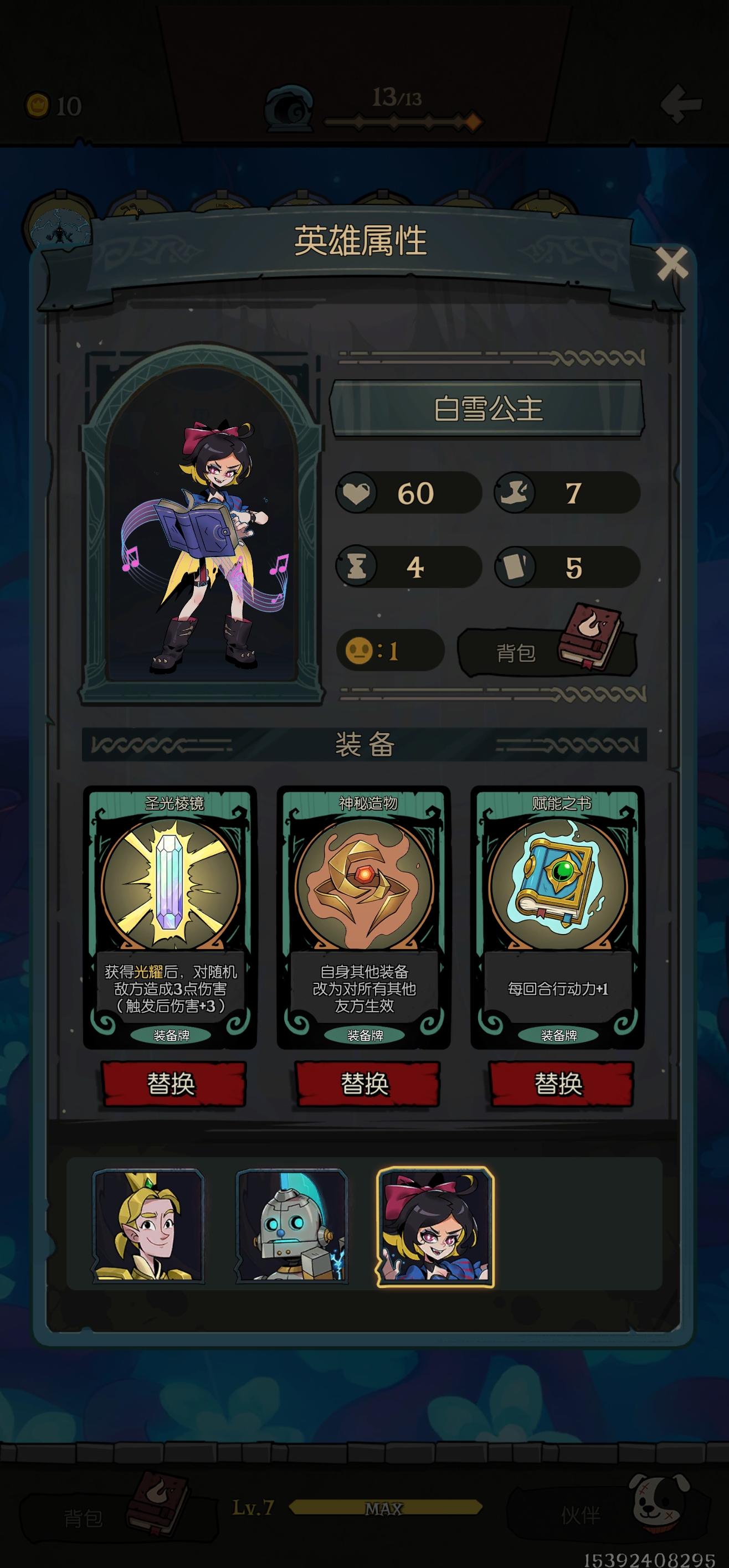 我的牌和装备如图。打boss的时候,光耀造成伤害的同时