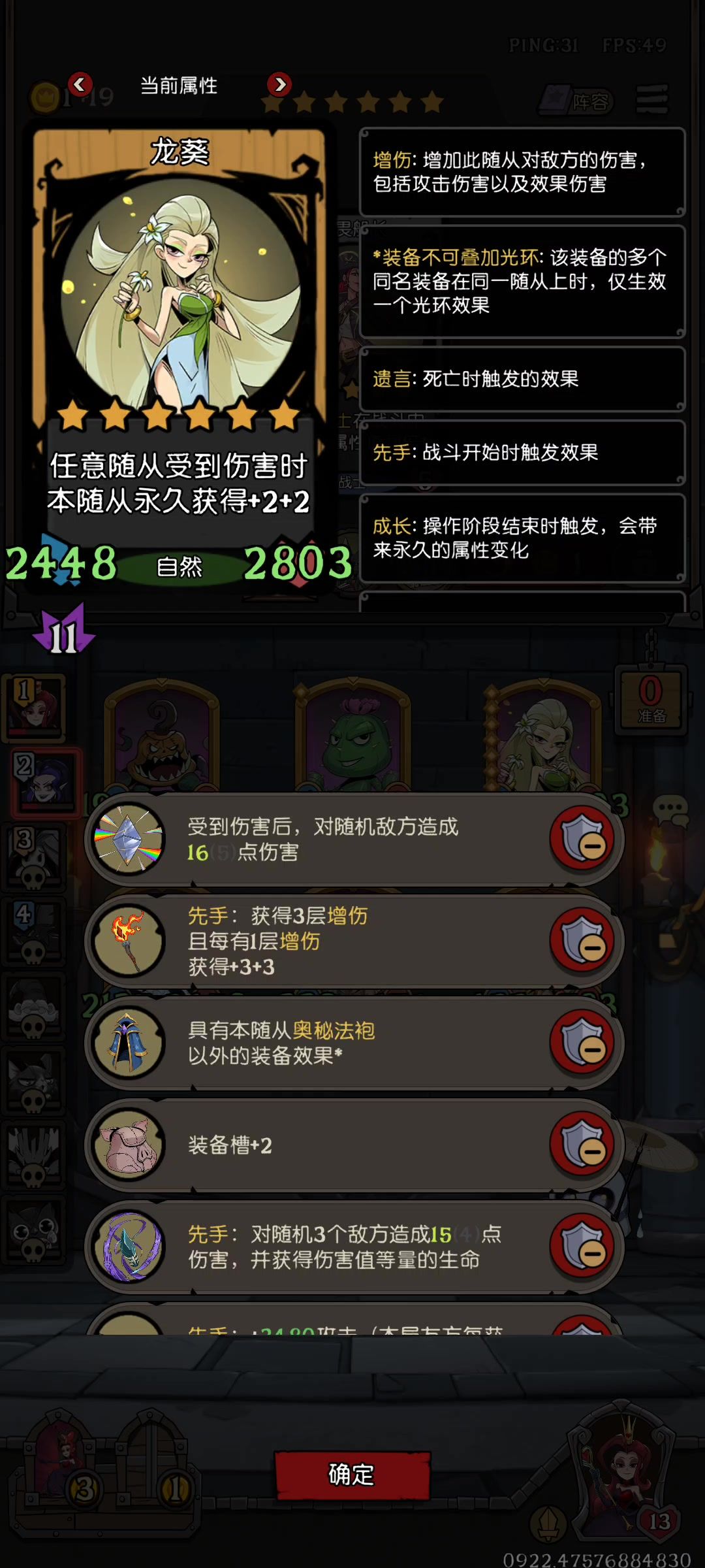 之前同阵容,没有安全主管,拿玫瑰剑士用的这个思路。但玫瑰剑士要自身吃到攻击力,而放后排很难吃到,只能靠零星装备的先手效果,频率叠的还是慢。新版本的安全主管完美弥补后排难触发的问题。前排直接挂满频率高的先手装备,一轮100次加属性起步(这还是没找到牌,灾厄/栖湖/幽魂都白色的情况),金多的情况一次战斗300次左右加属性不是问题。这样,单单算安全主管,给长矛永久提升的就是300/10=20*5=1