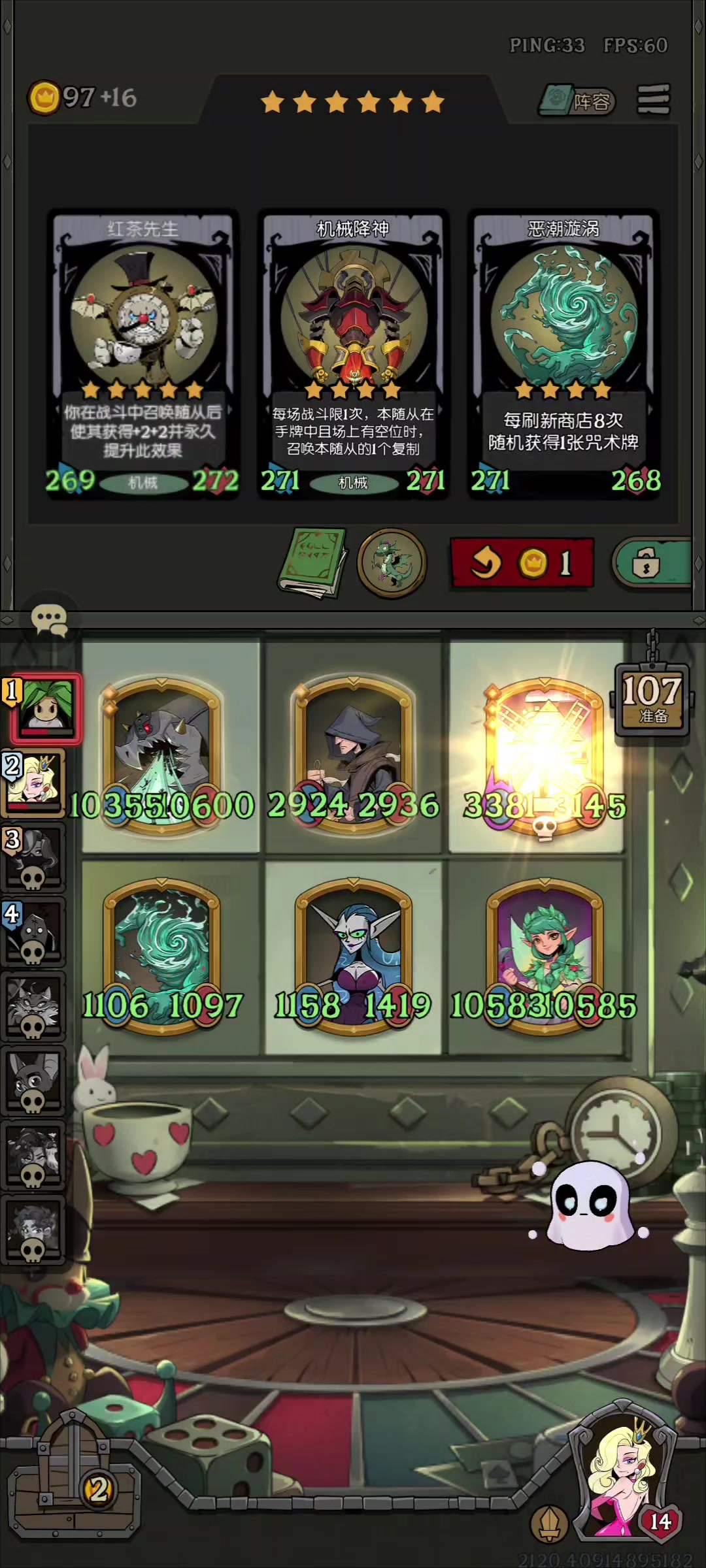 前期大盗+摇铃+泉水刷钱,漩涡刷新拿咒术,机械吞噬+风车挺战力 拿到两个击杀金币咒术,直接挂给风车,然后大盗直接可以卖了(机械吞噬要拿护盾和战力装备,不好挂铃铛等打钱装备) 正常没有精灵舞伴,上两个风车或者两个漩涡继续拿咒术,前期要的咒术主要是击杀金币,后期要的咒术是触发成长和额外装备槽,正常来说2风车最好 这局给了凶恶玩具珍宝,直接无脑刷刷刷,可惜一直没找到时光精灵 玩完一把抑郁症都治好了