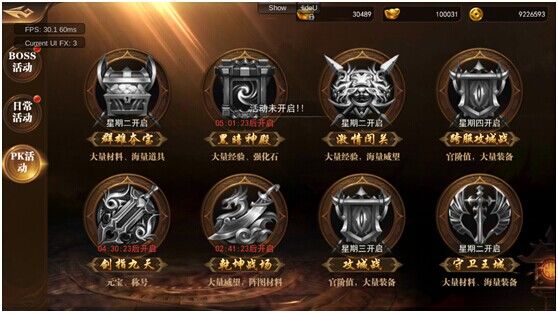 暗黑神殿神殿一共分为9层,玩家需要收集一定的黑暗令牌才能进入下一层。玩家收集令牌后,通过当前地图的传送点,即可进入下一层,同时获得下层奖励。每层会刷新三个黑暗喽啰和一个守护者(精英),玩家想要进入到下一层需要一定数量的暗黑令牌,而暗黑令牌只能从怪物身上获得。暗黑神殿会掉落大量强化石、海量经验!暗黑神殿活动开启时候,玩家可以通过点击主界面活动大厅进入活动界面,然后点击PK活动选择暗黑神殿。系统会