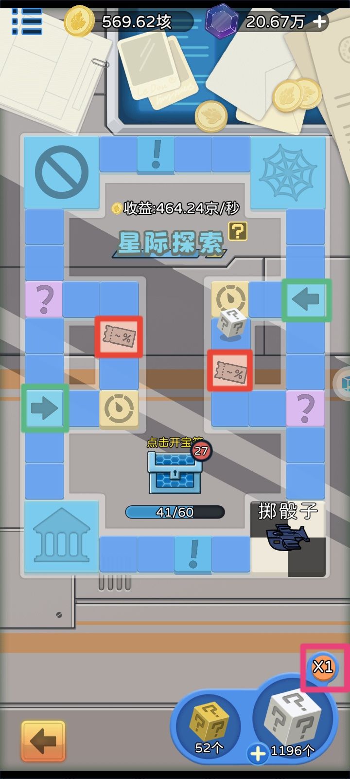 你没看错这是2,到你不会想到它还有3[表情_斜眼笑] 3.这条最重要,要好好研究,一定要弄明白,这是这个游戏带来加成最猛的。点击屏幕右下角的3个点,进入星际探索。这是个类似飞行棋小游戏。唯一获得藏品的渠道!藏品能百分比加力量和体质,一共10种。其中机械外骨骼,典藏版科技箱,末日矿镐和星辰手链是加力量的,优先级比较高。剩下都是加体质的。里面星辰手链的属性又是最高的。下面上图说玩法:白色的大骰子用精华