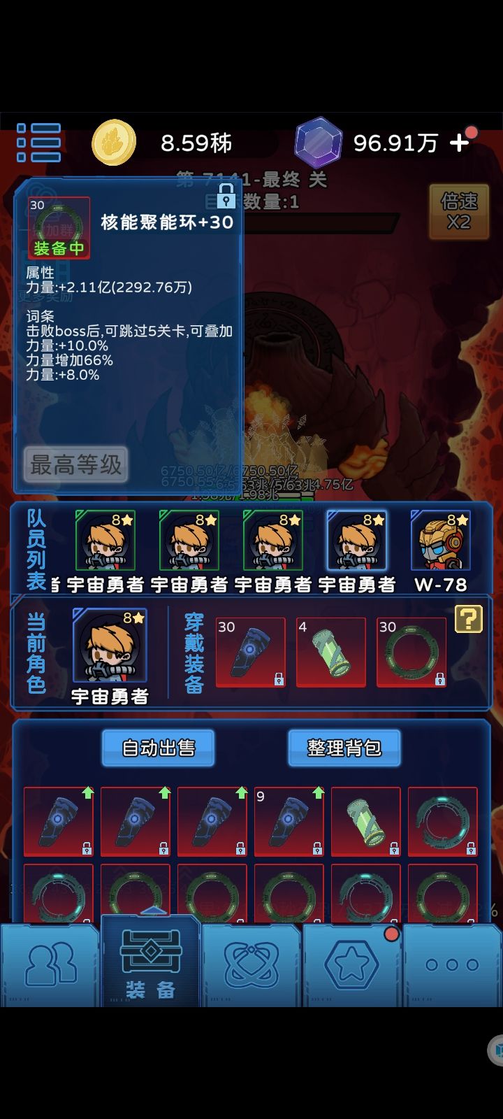 1. 进游戏第一步领6666码刷开局人物,有一个教官级别的宇宙勇者或者奶妈就可以玩了。 2. 第二部领libao1111,领取一个随机教官级别人物,这样你就有两个教官级的人物开局了。 3. 然后就是正常推关,有准备穿装备,千万不要给装备升级哦,所有的精华都留着。(可以找群主氪个免广,30米,相当于买断了) 4. 15关出绿色装备,记得把白色自动卖出点了,不然背包不够用,绿装出三套后把绿色自动卖出也