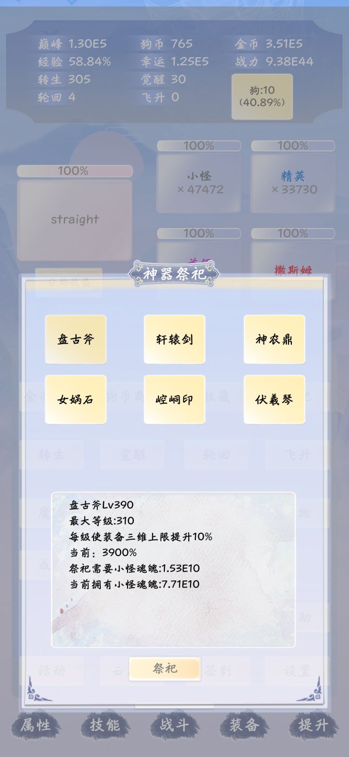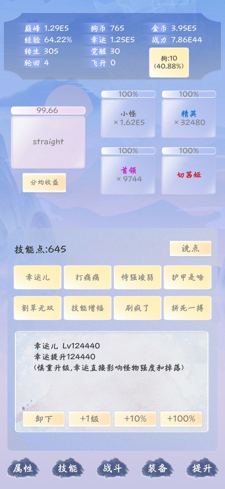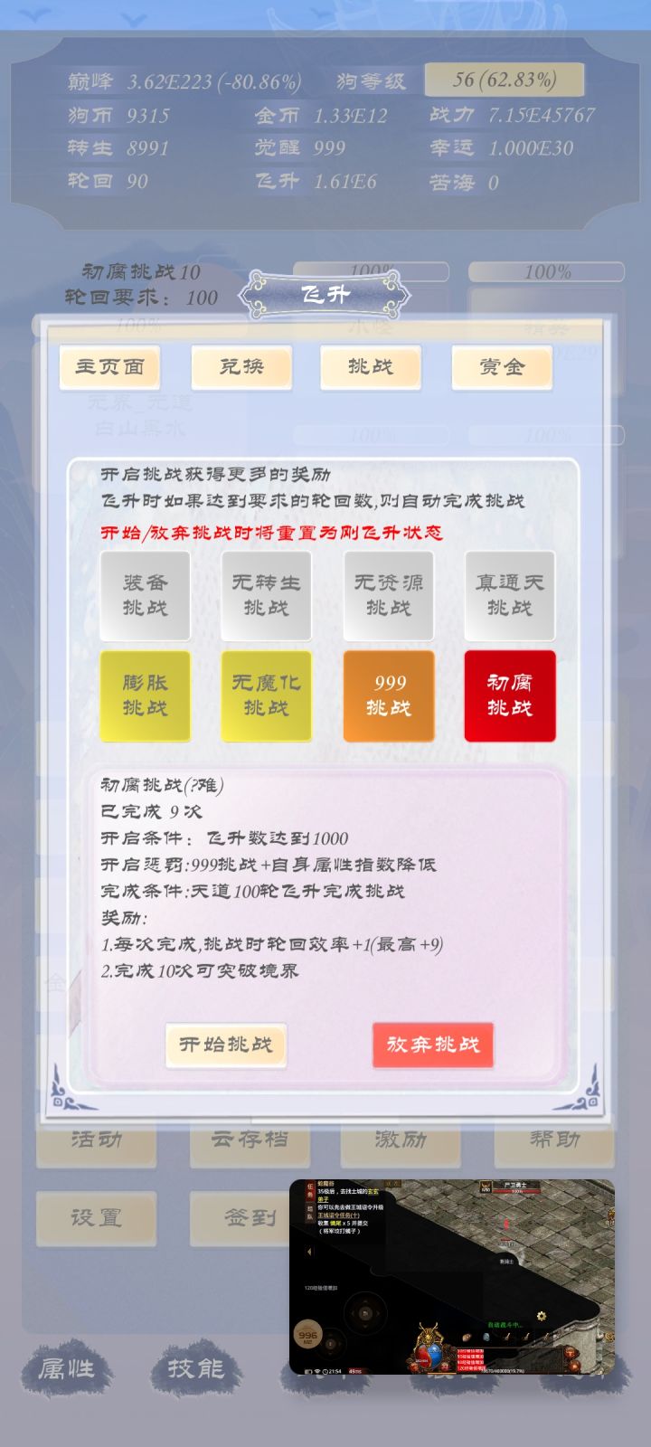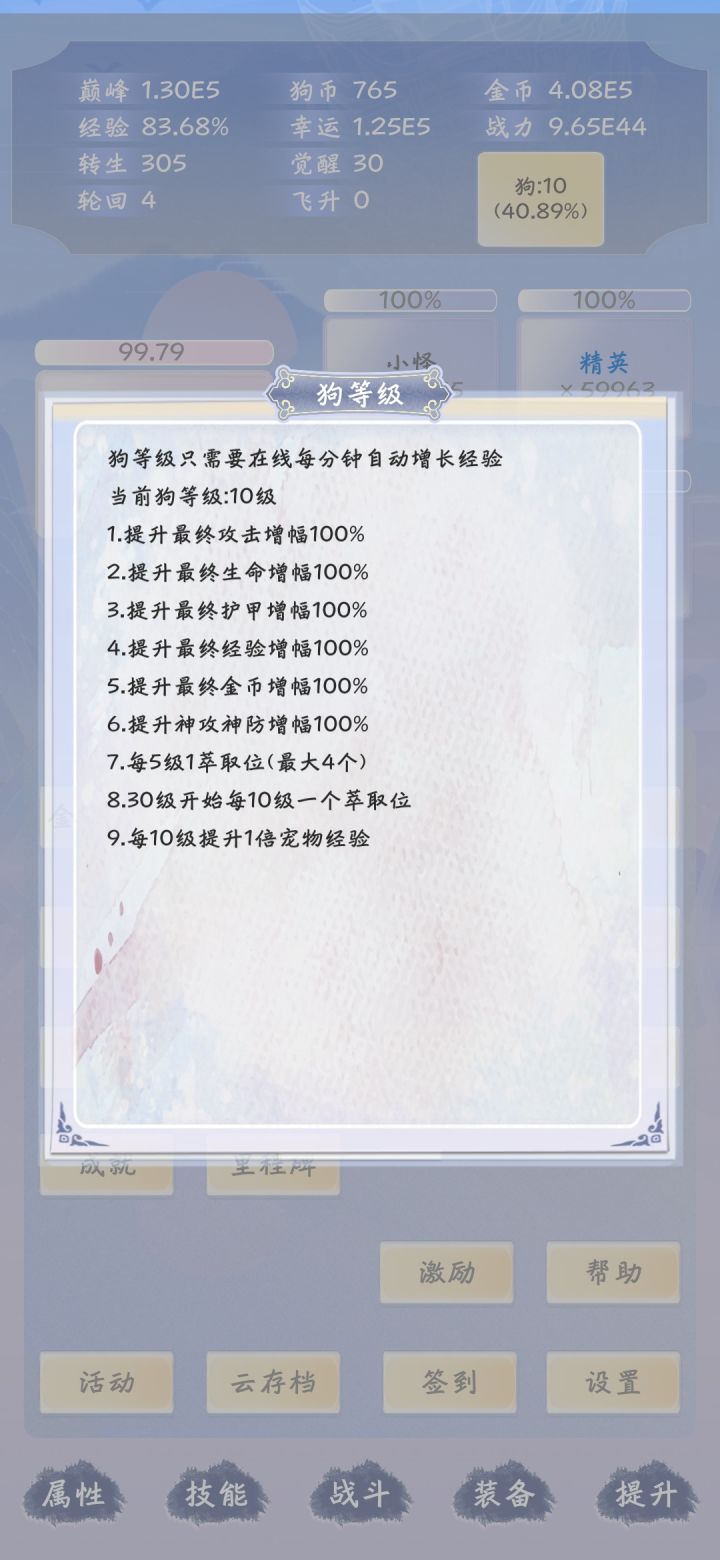 玩了一天了,目前轮3,16个小时基本前9个小时都在迷茫期,哪怕看了论坛的攻略,也特别迷茫,因为论坛攻略说太敷衍也不算,只能说不够具体。所以来讲讲个人的攻略,只针对从零到轮回结束,因为本人也才轮回3。这游戏前期的神攻和魔攻最重要也是最主要的增伤来源,游戏刚开始先把广告的10张副本券看了,然后狗币商店用副本券换狗币,能得到10000狗币,狗子先喂到10级,剩下的狗币全买百分比神攻,然后开始打怪升级。