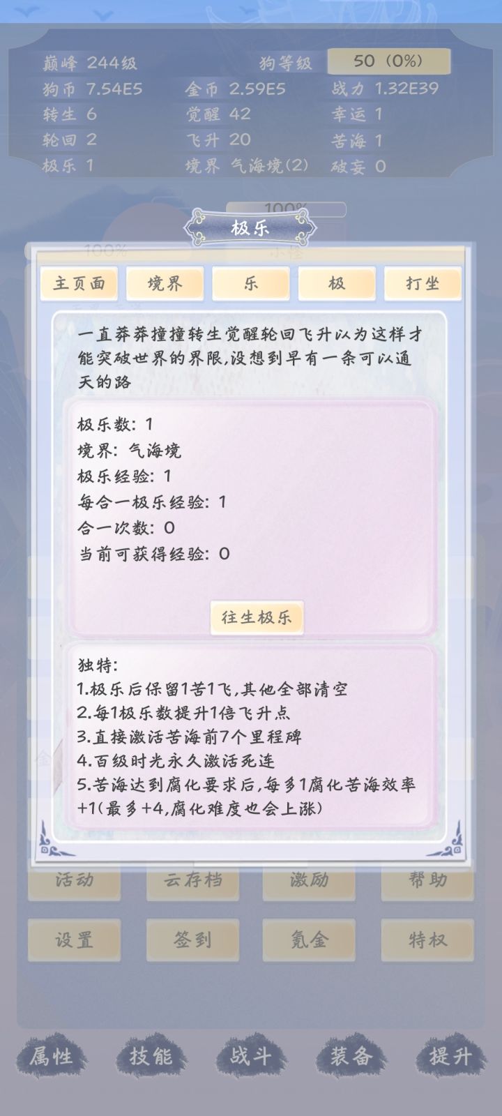 也终于是到了极乐了。费老半天劲,之前进苦感觉真是难办,现在各种活动叠加应当是简单许多了。我初入苦时感觉依旧是很难起步。考虑直接无界无道至9苦。后来发现太难了。很累,就直接走了3苦开个赏金效率。(现在应该好很多,有初腐+1苦效率+1。还有极前各种活动buff加成)若不想九苦开里程碑效率,可以直接进灵摆烂。前期是很痛苦的。到十灵后开始起步。我走了一些没必要的弯路。后来发现灵后两条路可以选择,一是按大