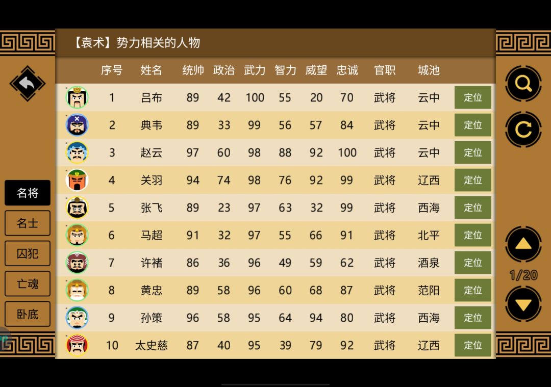 废了好大的劲终于整理出来了,原生人物武力值80以上排行榜,可惜只能发九张图#三国时代3