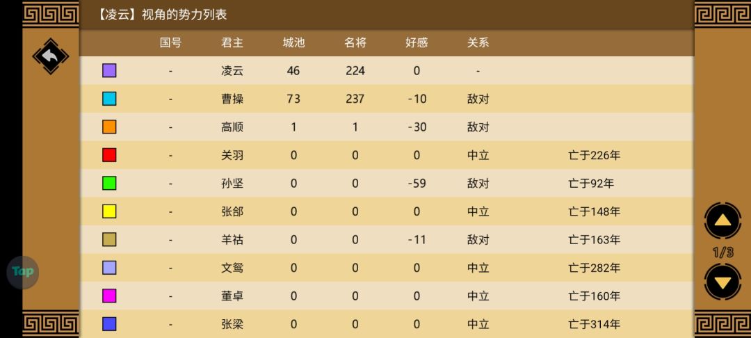 这是第十三年的状况,还有八个城,全部提前布置好武将。 还是很累的,开局都重开了几次,才找到最佳路线,然后不断回档,实际操作时间应该有十来个小时。 大图城池太多了,还是来挑战小图吧[表情_大笑] 速通挑战合集: 噩梦小图速通挑战 - TapTap