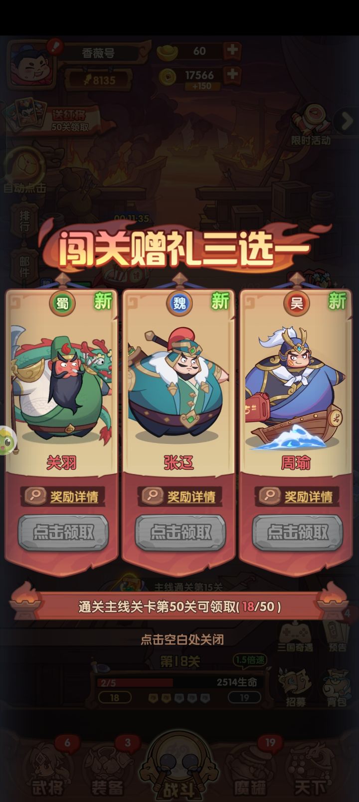 2、英雄收集比较简单,基本玩个几天就能全武将了,这点还是比较友好的。