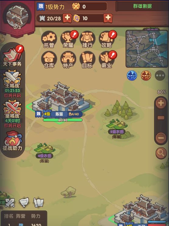 每个月会开一次一统天下,是这游戏的slg玩法,开这个玩法的时候聊天频道人都会变多,算是这游戏最好玩的一个活动了,前提是不被大佬堵城门,要是运气比较差分到的阵营比较弱玩起来就会比较难受,不知道官方什么时候才能优化一下这匹配机制,都多久了还没改。