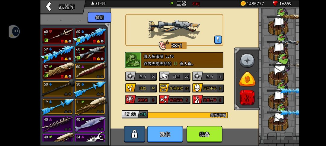 推荐武器鲨鱼配合冰箭+虫箭召唤虫巢