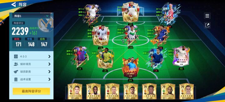 又玩了几天之后阵容也只是中规中矩了这几天每天都会给几个卡包,我也就欧出来一张87的,但好多都是重复的,而且交易市场,买了卡,不能立刻到就有点烦,有时候买了四五天都不会给但我还是很期待这款游戏正式上线之后,希望在正式商业街把手搓优化,优化手搓手感太差了,而且买球员用的那个兑换券不太好拿,我建议是改成别的改成抽卡,把手错改一下,抽卡改一下,感觉比现在绿茵要好