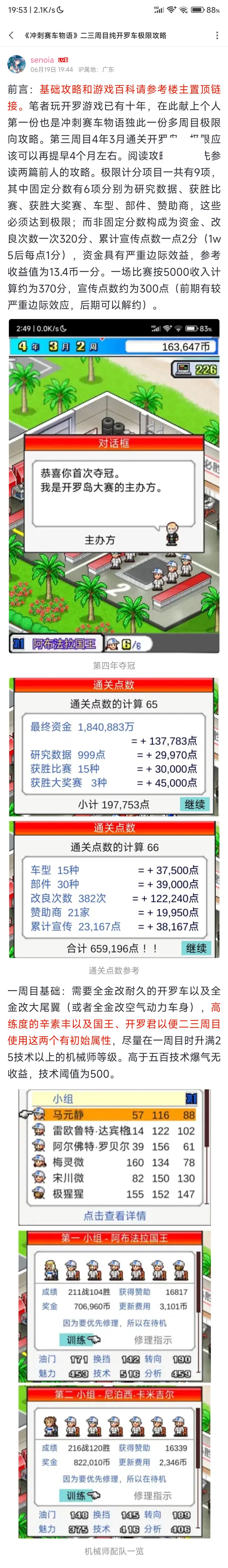 太累了,不停参加比赛,改良部件,哪怕是干杂活都没停过。 没有力气写攻略了,前期就是直奔超级车,爆气出超级车乱杀,金爆气全加超级车,另外三个配件都没出到第二等级。但是400左右的属性就是能通关除了猩猩和开罗的全图,最后两个爆气过。 4年5月3周通关开罗岛,其实可以提前到4年3月1周,因为4年1月1周就通关了世界联赛,后面怕过不了开罗去刷了两个金爆气,但是只加到轮胎上了,而且跑美国浪费了耐久修车额外花