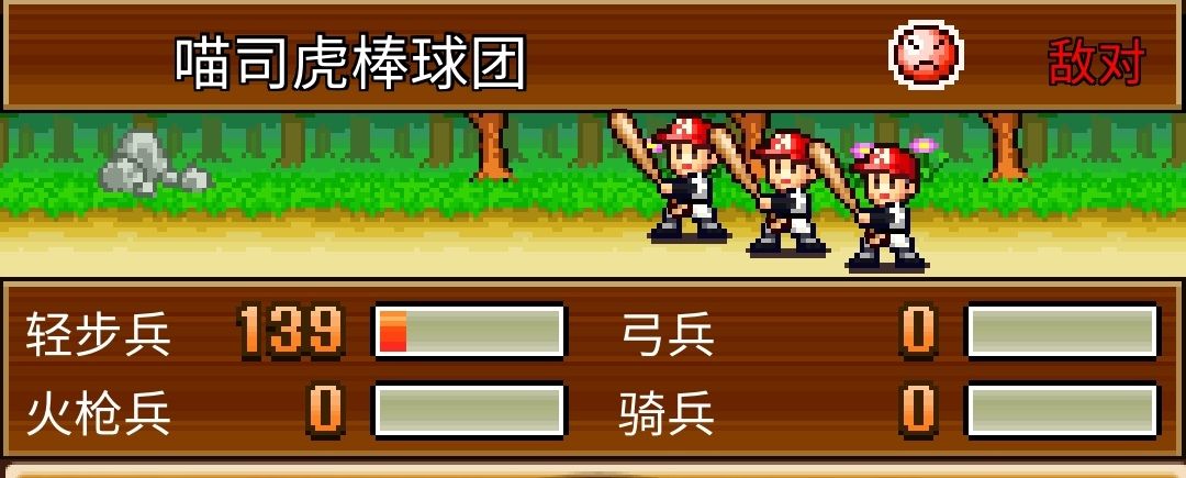 棒球团难点在于,全步兵,免疫火枪伤害,使我们无法采用简单粗暴的火枪流打败 因此思路在于将其他三个兵种最大发挥出来(步兵,弓箭,骑兵) 本套战斗人员名单由5步+5弓+4骑组成 组成前提条件(必看) 1.打败真·不败家族(旧称真德川) 2.打败兔女郎团(为了获得兔子装) 3.国王军到达41级(为了获得最多的兵法书) 4.未使用广告+1出战人员,若使用可十五人(但我喜欢原汁原味的十四人 ) 以下正文 一