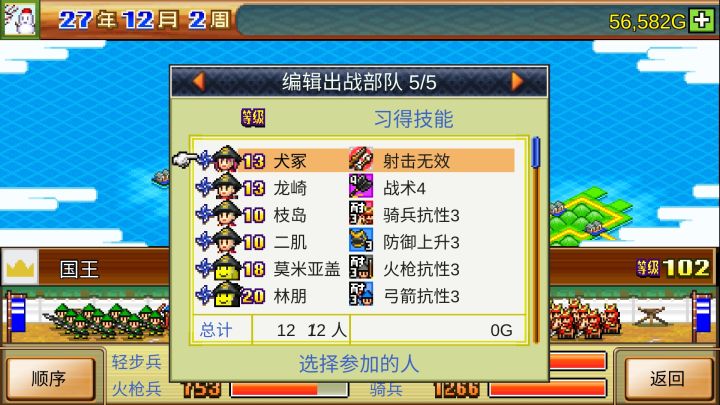 战术每+1,增加5%伤害,弓箭,骑兵,步兵,火枪伤害减免每+1,减少敌方5%伤害