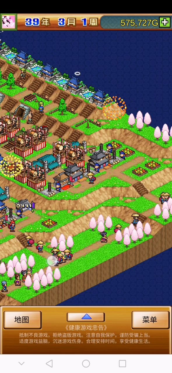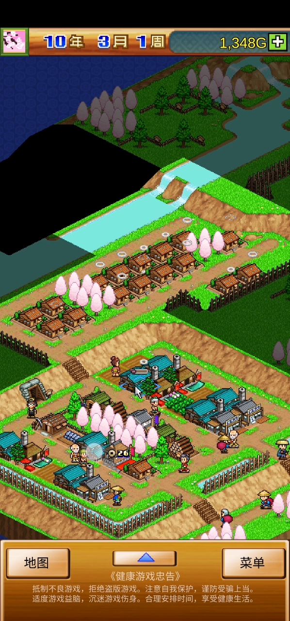 把商店做靠近路口这样过路购买商品速度快,后期我把总的地盘划分成四个商品售卖点,商品种类丰富了购买的人也就更多,常规一般是三个售卖点在中间开了一条小道过去。注意一定要保持武将的活动性有些武将一年或者几年都可以不出门干活,前面三个售卖点个人感觉挖矿—铁匠铺更赚钱。第四个售卖点商店我选择了和服店把三个小岛连接为一体做整体让闲散武将干活,也增加了经济活性。其他玩法还在琢磨中……