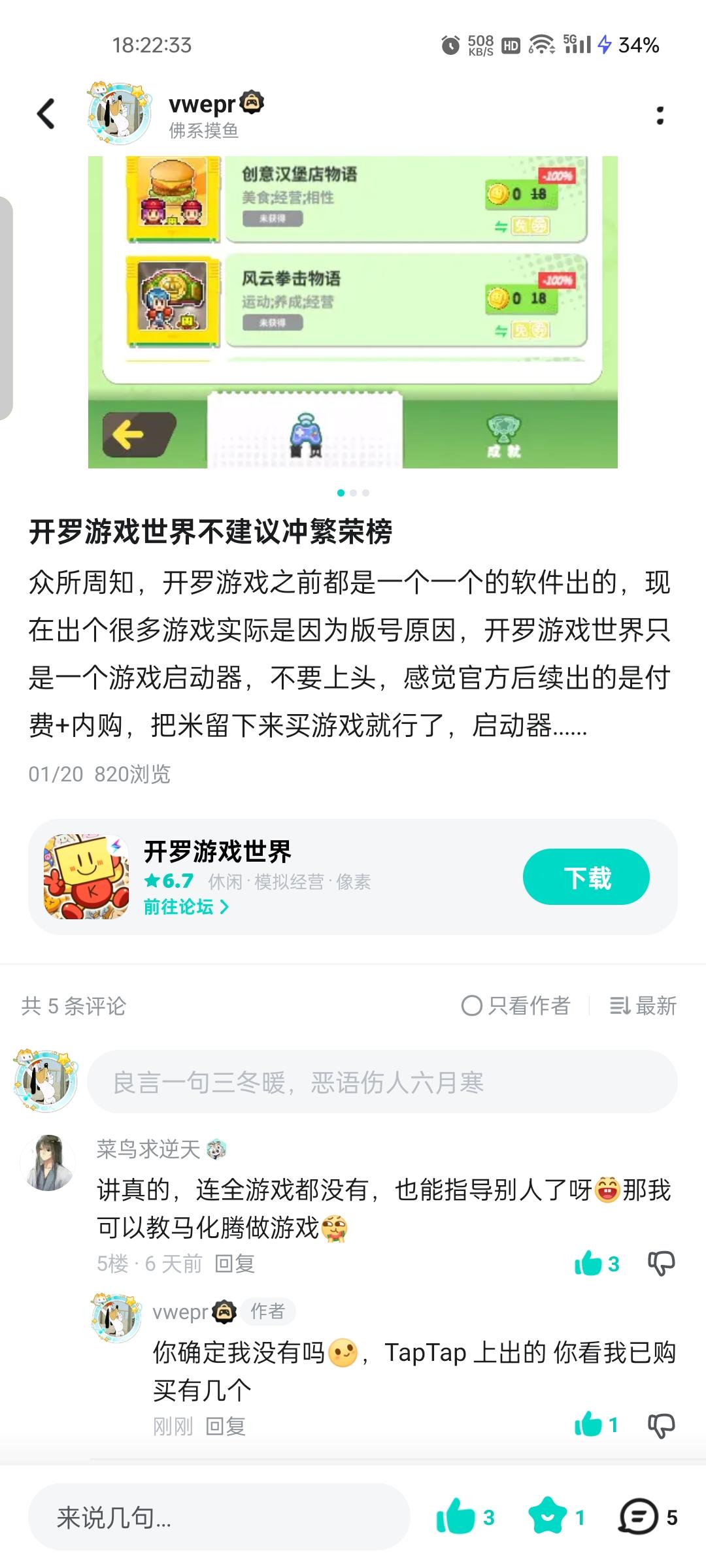 我 TapTap 出来的开罗游戏都购买了,跟我说那10个我买不起,我没有全游戏