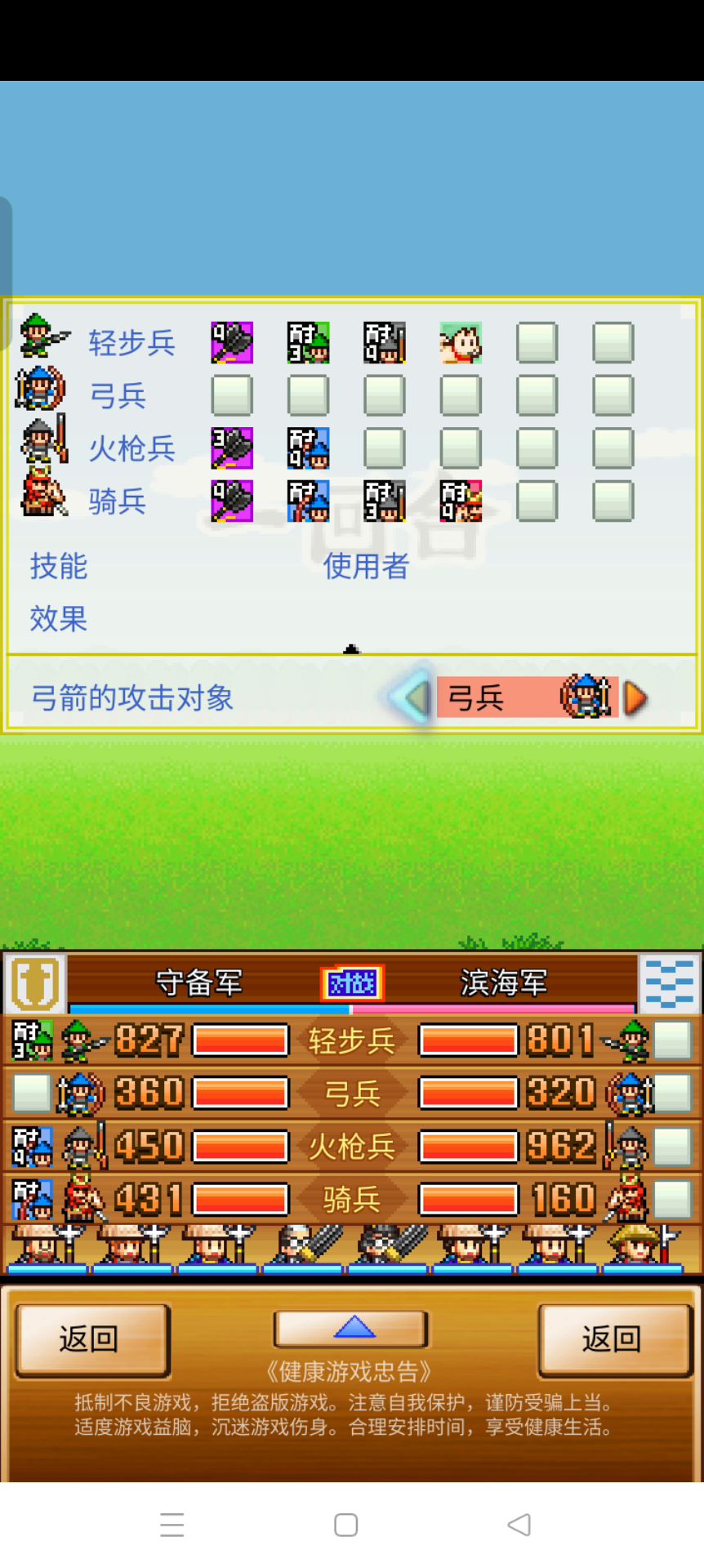 如图,因为地图上限导致双方弓箭手射击的弓箭消失,骑兵直接不冲锋,建议扩大上限,反馈到游戏客服里面了 #合战忍者村物语 #bug反馈 #bug #游戏bug