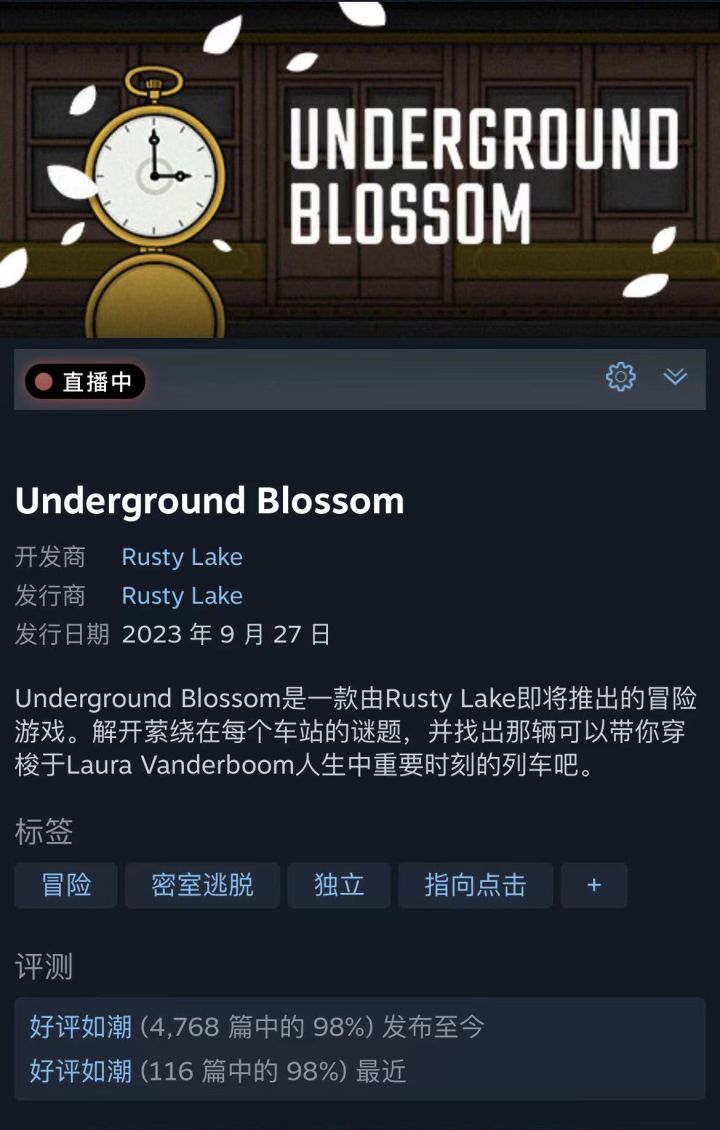 2023解谜游戏top1️⃣必须是锈湖 地铁繁花 ‼️.✅游戏名:《Underground Blossom》.✅关键词:密室逃脱丨诡异画风丨剧情解谜.图1️⃣是地铁繁花新年全家福图2️⃣是锈湖官推发布的预告「繁花地铁很快将抵达神秘的新车站! 准备好车票,等待更多消息!」✨✨哇~超级期待呀~.🚇这次的故事发生在地铁站,7个独特的地铁站,每个车站都象征着劳拉的过去和未来,你