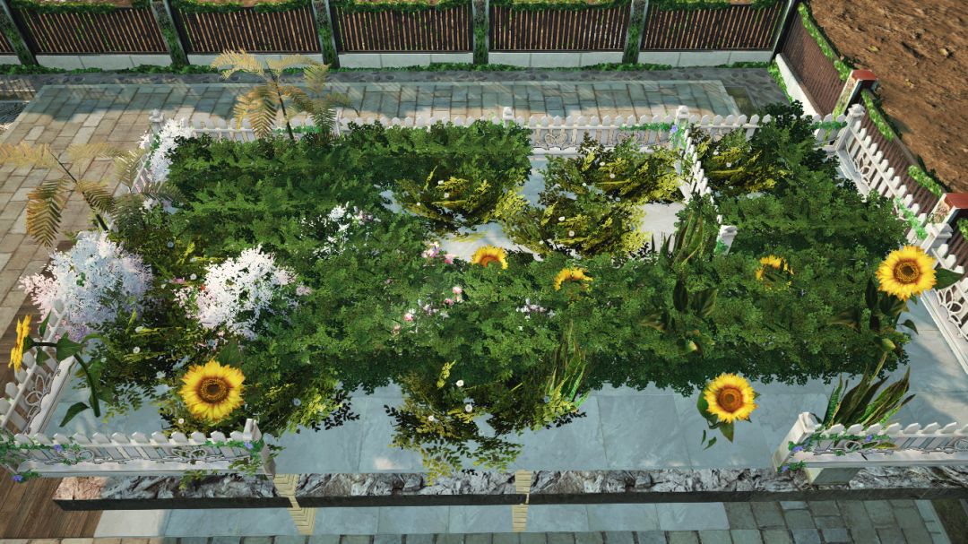 幸存者们大家好呀 明日建筑课堂又开课啦 明明给大家带来了@秋日森林娜娜 分享的打造花园庭院的小技巧 快和明明一起看看吧 花园庭院 花朵盛开 草木葱茏 清新的空气中弥漫着花香 和生命的气息 接下来就看看这样的花园庭院 是如何建造的吧! 要打造这样的庭院 首先我们要建立一个双层结构平台 用木矮墙作为支撑 上面铺设地板 接着我们进入蓝图模式 横向摆放好修剪灌木丛 摆放完成后 将部分灌木丛