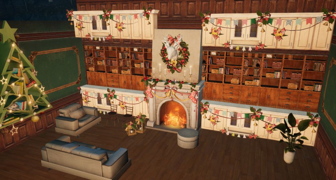 幸存者们大家好呀 明明今天又带来了 建筑课堂栏目 快来和明明一起看看来自 大神@画一颗心心的建造技巧吧 圣诞壁柜墙 冬日壁炉旁 边感受温暖 边看书阅读 感觉是很温馨的梦中画面 快来看看是怎么建造的吧 首先铺好3*3的地基 并将最后方的1*3 铺上其他颜色的地板 将圣诞夜壁炉放在中间1*3的地基中 注意壁炉要放在边缘位置 在空旷的地方放上木矮墙 并铺上墙纸以方便区分正反面 将圣诞夜壁柜放在木矮墙上 选