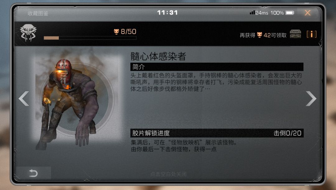 幸存者们晚上好呀 上次@星慌慌分享了一些 难以寻找的怪物图鉴解锁攻略 跟着他的攻略 很多幸存者表示受益匪浅 这次他又给我们带来了 一期新的攻略 快和明明一起去看看吧 髓心体感染者 髓心体感染者位于 灰熊山地标起重机附近 它可以复活周围的怪物 我们到达灰熊山起重机旁 髓心体感染者 就在厂房的顶上游荡 可以选择清除沿路的感染者 并在厂房下方拍照记录 当然,也可以选择绕过感染者 沿小路直接去