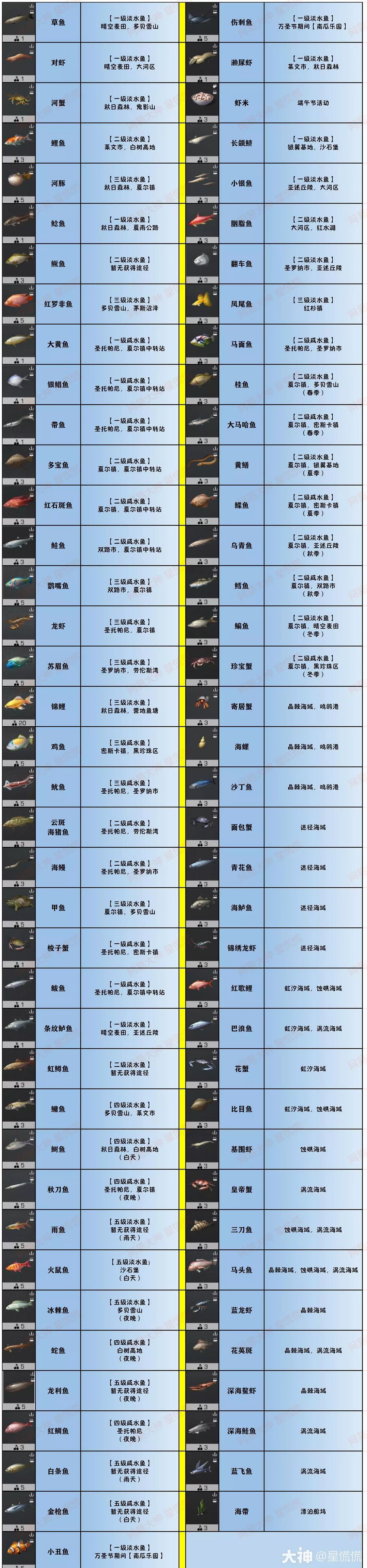 💎鱼类食材 💎肉类食材 💎水果食材 💎蔬菜食材 ✨附注 💎上图仅呈现各种食材的主要获得途径,部分食材也可在各种活动及其他玩法中获得。 💎部分食材可直接在交易之城中购买,也可在各地图采集队处兑换。 💎图中所述的天气、季节、昼夜等均属游戏世界观,与现实世界无关。