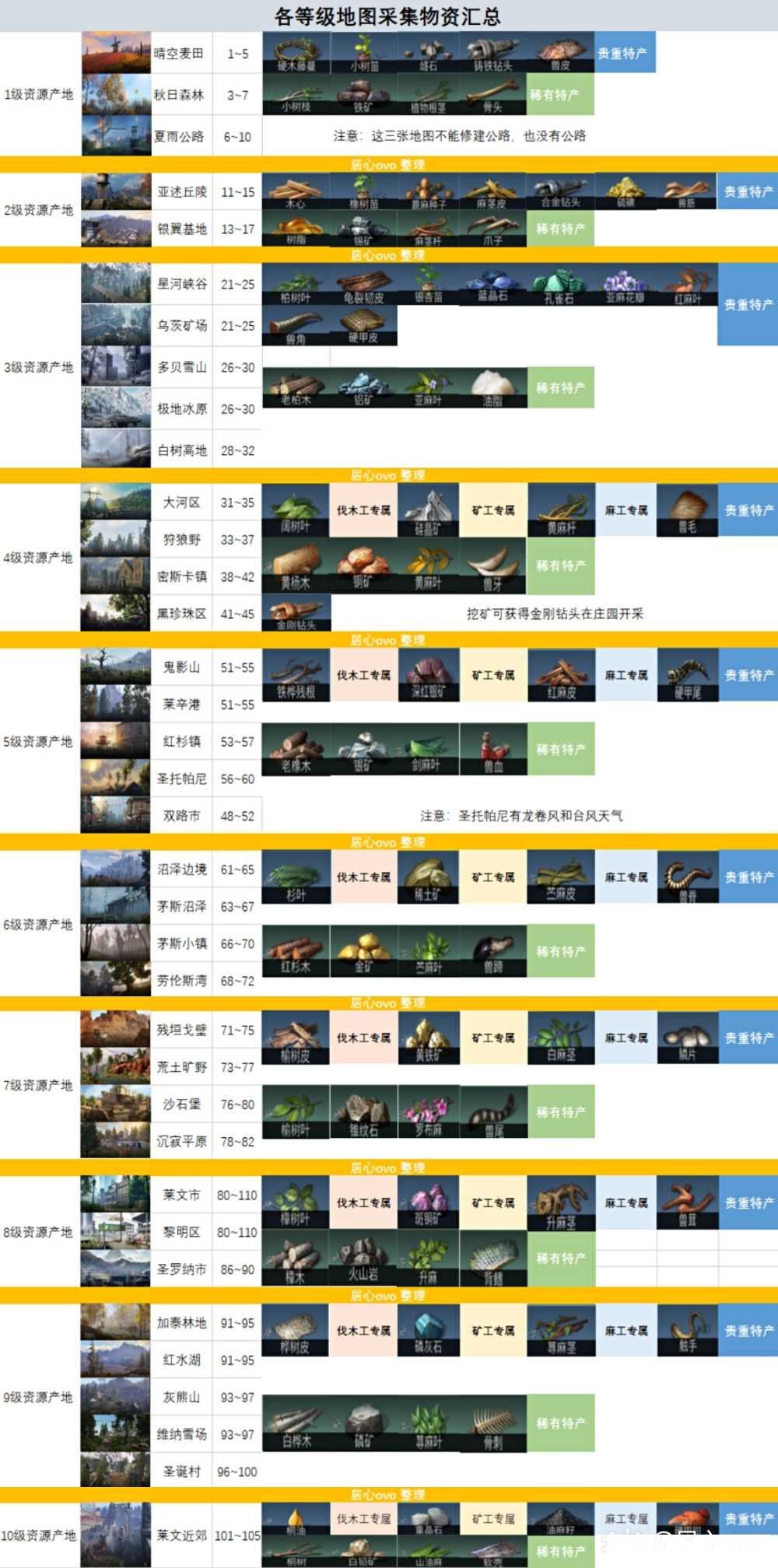 达到等级之后,才可以去对应地图开采 部分副资源开采需要在基础采集技能 加点之后才能获取 专属资源只有职业专属才可以获取 Ps:半感染者不能使用工具采集 前期新手建议玩采集职业:易上手,可赚金