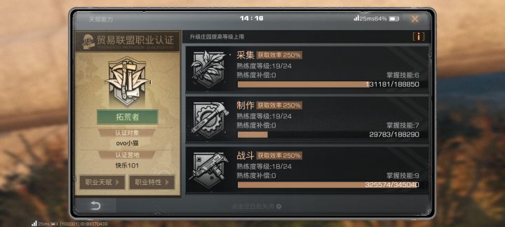 卡生存手册了,因为采集没到20级升不了伐木采矿采麻到3级。我做完两个援护就找不到快速升熟练度的方法了。