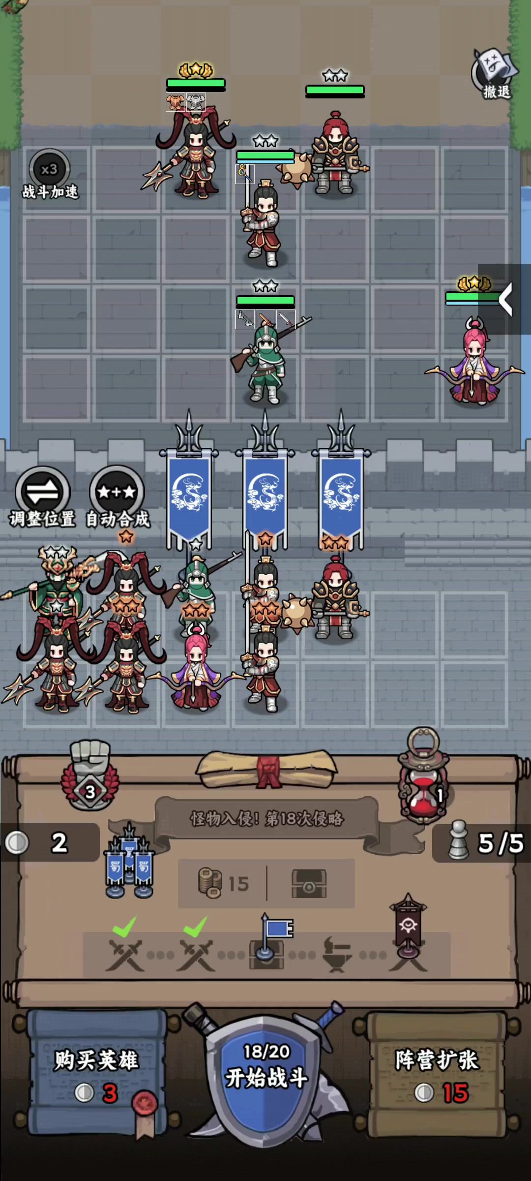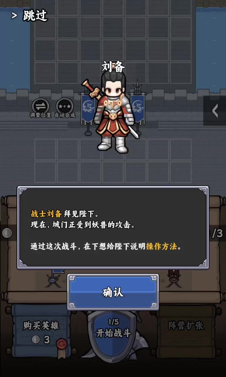 报告老大~ 有敌情!对面黑压压一片来攻城 反派:小子们,给我拿下这座城,财宝美人都归你们了! 刘备:慢着,刘备在此,谁敢撒野 反派头子:哈哈哈,区区2星也敢挡我 召唤术~ 合成~ 进化~ 一轮磅礴的剑气冲向敌军 反派头子:呃。。。大意了!