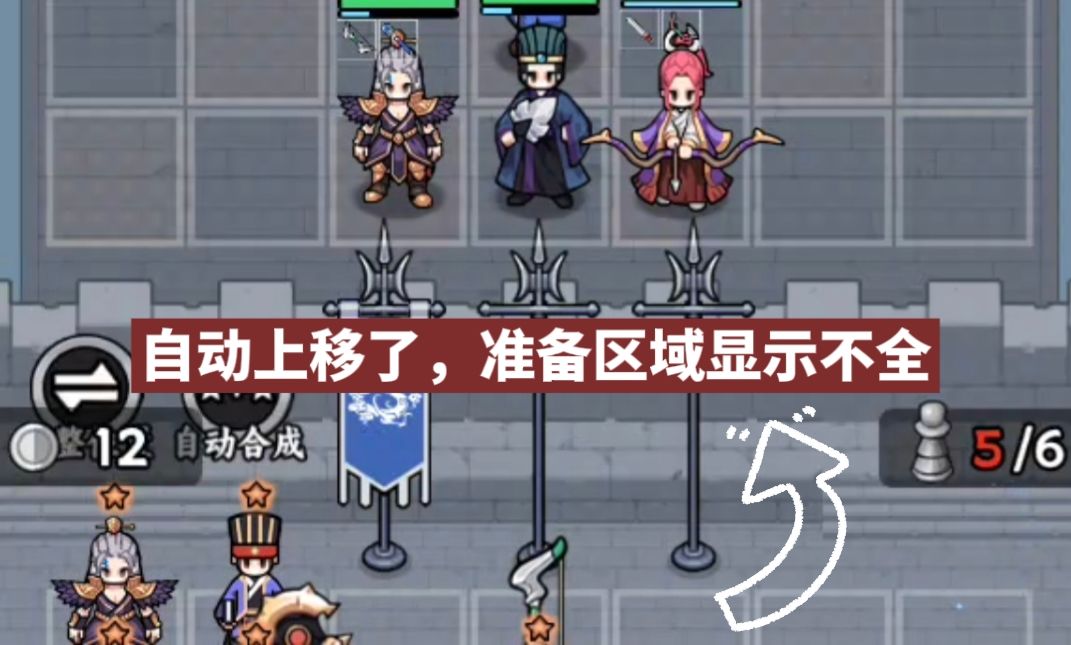 理解没错的话,右下箭头按钮是缩回购买界面的,检查当前装备再决定是否有需要购买: 1,现在要长按才有缩回效果 2,长按后,备战界面会上移一段距离,导致只能看到一排备战栏,就显示不全了