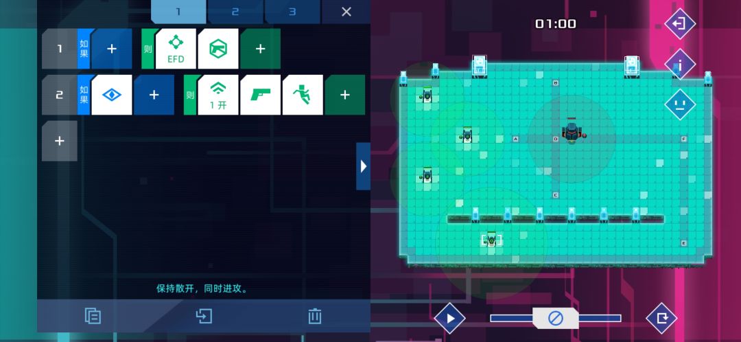 即将开始更艰难的征战,不知还能创造奇迹吗? 最终关首先排除一行过,如果要一行过,那么必须得要一个追击或撤退指令,一行的情况选追击必定被第一个机器人打死,选撤退由于地形原因无法走出来会被第二个灭掉 就这样吧,这两行过关概率比起前面几关的极简可谓良心了