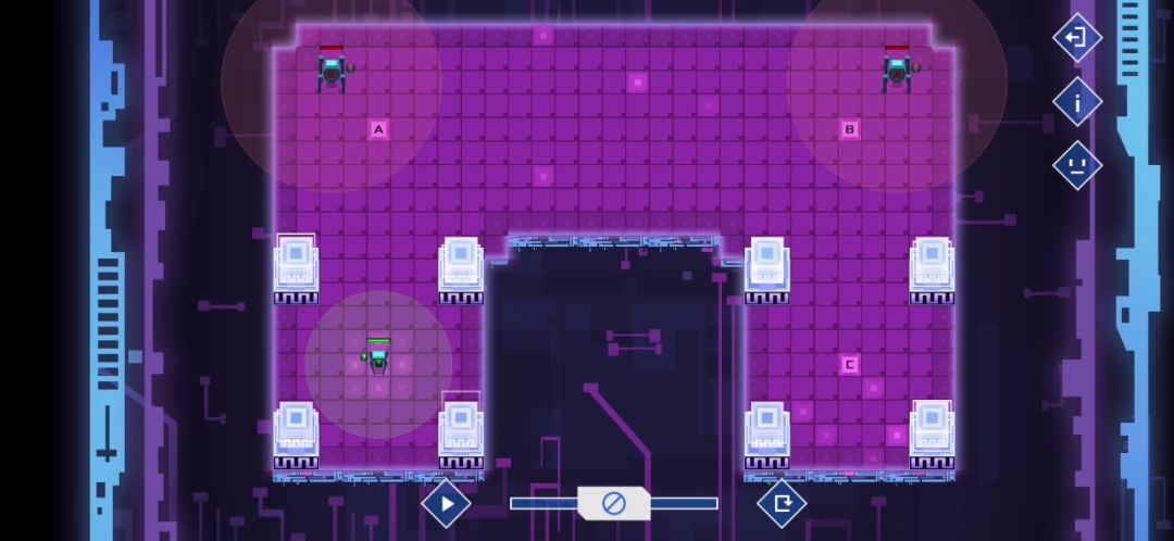 第十四关中间这个友军因为敌人的运动有规律所以可以不设计程序,有意思
