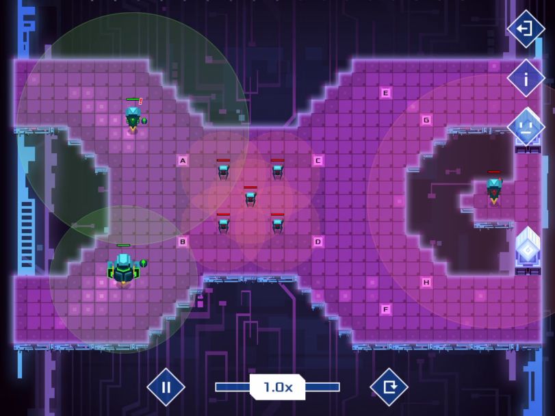 答案与解析一.单选题1.B解析:本题考查指令的辨识。A项是检查耐久,不符合题意;B项是检查目标耐久,符合题意:C项是检查目标编号,不符合题意;D项是检查目标方向,不符合题意。故选B。2.D解析:本题考查单位类型的辨识。由图可知,该单位类型是侦察兵。故选D。3.A解析:本题考查各单位类型的属性。各单位类型的属性如下表:*1格为64像素由上表可知,移速士兵>狙击>怒火,视野范围狙击>怒火>士兵。故选A。4.C解析:本题考查路径点的重置。新路点命令重置旧路点命令,站立追击等命令不能重置再次被检测到的旧路点,所以B项和D项会返回路点A。C项中撤退会导致敌方士兵提前离开侦察兵视野,用时较A项短。故选C。5.D解析;本题考查程序的运行机制。在有多单位的情况下,程序的执行顺序按照其在编辑器里被创建出来的顺序。有题意可知,执行顺序为2、4、1、3。所以在运行完后,信号的开关情况是2开,3关,4开,5开,6关,7关。故选D。6.B解析:本题考查警戒。引起警戒状态时将会确定一个警戒点,位置在引起警戒的敌方的位置,若之后不再触发警戒,则警戒点不变,仍处于l点。故选B。7.D解析:本题考查…反正好多东西。A选项由于惯性,单位可在无程序执行时前进,不符合题意。B选项由于程序的执行顺序是从左到右依次执行,在未知两个命令的位置先后时,信号的开关情况是不确定的,不符合题意。C选项单位发现敌人、受到攻击、警戒传递、设置不同于当前目标的目标时都可以触发警戒,符合题意。D选项单位只有不处于站立状态时站立是不稳定站立,此时其他单位可将其撞开,不符合题意。故选D。8.B解析:本题考查程序的运行机制。当追击指令放在第3/4行,信号2会因为第2行的程序而保持关闭状态,故追击无法执行。当追击指令放在第1行时,第二行站立的优先级更高,故追击无法执行。当追击指令放在第2行时,追击指令可以执行,符合题意。故选B。9.B解析:本题考查程序的运行机制。由题意可知,需要的程序是一帧前往A,一帧前往B。由于B选项前往B的优先级较高,故不执行前往A,不符合题意。故选B。10.C解析:本题考查程序的运行机制。由题意可知,我方士兵需减速到1/4。即三帧站立,一帧前往Z。ABD项都符合,C项是1帧站立,1帧前进,减速到1/2,不符合题意。故选C。二.填空题11.设置瞄准偏移解析:本题考查指令的辨识。由图可知,该指令是设置瞄准偏移。故答案为设置瞄准偏移。12.3241解析:本题考查警戒传递。因为单位只能将警戒传递给视野范围内的其他单位,而不能接收来自视野内其他单位的警戒,所以要按照视野范围从小到大的顺序消灭。故答案为3241。13.当前朝向解析:本题考查惯性。当单位与所要前往的路径点之间有障碍(墙或沟)时,它会沿着当前朝向继续前进(初始朝向默认向右),直至发生碰撞或不再有障碍。故答案为当前朝向。14.能解析:本题考查信号的应用。信号的状态是持续的,独立存在的,不会因为单位的销毁而改变,信号的状态只能通过命令来切换。故答案为能。15.8.52,512解析:本题考查程序的运行机制。9信号的计时器穷举计数最多可计数511(2^9-1)帧,需要写512行程序。因为一秒运行60帧,所以可计时511/60=8.52秒。故答案为8.52,512。三.简答题16.略。解析:本题考查特性。具体可参考17.蜘蛛设置警戒时长0秒,蜘蛛和侦察兵同时探索向上走,侦察兵发现敌人立即撤退,蜘蛛接收到警戒后,横移探索实现转弯。侦察兵再利用可见友方数量和检查目标距离从上面绕过去。再同理即可。解析:略。四.程序设计题18.⬆️出自乾燥剂大佬。解析:略。19.方法很多,随便放两个。⬆️出自LLLL大佬路点ACDA解析:略。20.解析:略。21.(4~11行是9信号计时器,把第三行放到第二行的则语句里去)解析:由于敌方士兵的程序是由发现敌人触发的,所以只要敌方士兵进入我方士兵的攻击范围后,站立开火即可。因为两士兵间隔16格,攻击范围4格,移速4格/秒,所以需要计时3秒,也就是180帧,转为二进制就是信号9开,8关,7开,6开,5关,4开,3关,2关。此时站立开火。22. 解析:略。