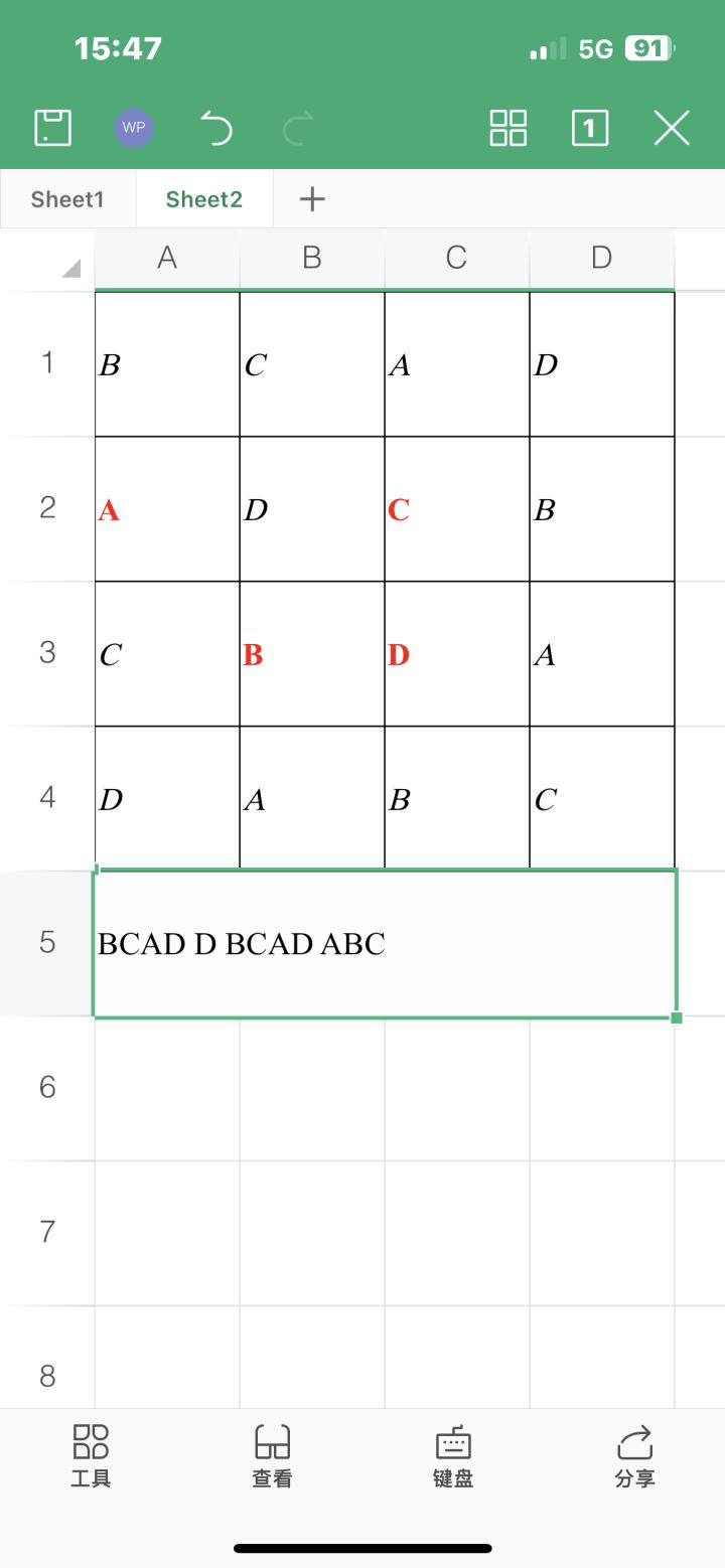 这一关展现了一个2*2的数独(仅含1-4),其中我们需要根据四个不重复的随机的初始值填空,按行的顺序依次前往数字对应的路点直至填完所有的空。这关要处理的问题就是初始值的不确定性,我们需要根据不同的初值填不同的数字。 既然初始值不确定,那么我们就用一点小学的知识:设四个初始值分别为ABCD,那么根据数独的规则很容易就能得出所有空的值(如图一)。将填写顺序排列出来通过计数器来填写即可。但是,让我们仔