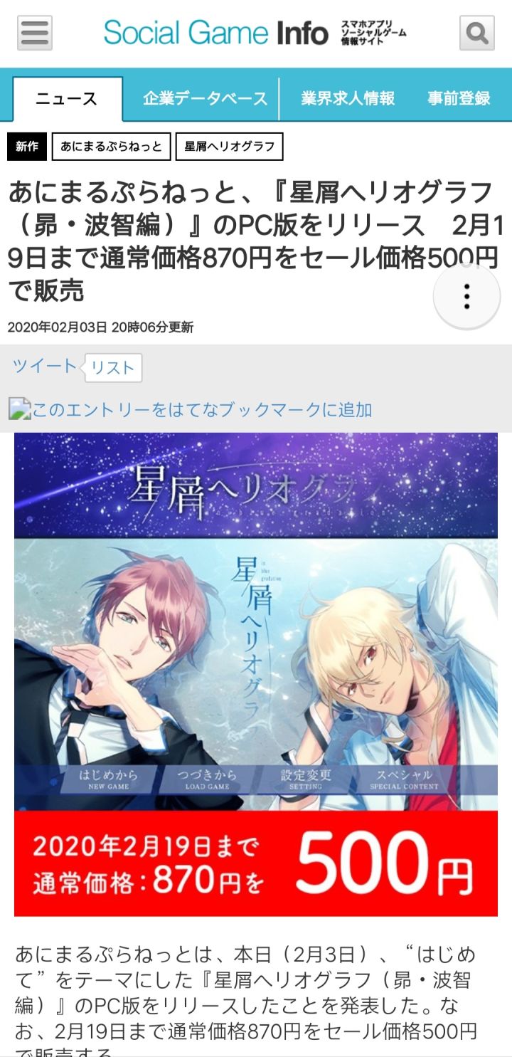 由开发的恋爱乙女游戏《星屑へリオグラフ(星屑日像仪)》公开了主要角色声优阵容,并决定在游戏内搭配自家旗下乐队starlit blue topia的主唱曲《starlit blue topia》。可以看出,官方是砸钱做声优呀......一股被宠爱的气息扑面而来。游戏的角色介绍可以跳到观看。角色声优:乐曲情报:游戏内插曲由独立乐队starlit blue topia负责,曲名为《starl