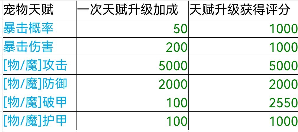 写这个贴子是出于对宠物天赋的兴趣,及看看宠物天赋组合间的差距。也给不少和我一样养不到2星座的平民选取天赋时提供参考,有需要的大佬也可来看一眼 本文规则: 讨论物理宠时默认攻击、破甲为物理攻击、物理破甲(包括星宿属性),魔法宠同理; 星座属性只考虑完全体(或已点满当前星座的暴击、暴伤、攻击和破甲) 星宿属性只考虑攻击和破甲 一、属性计算 先放参数,只考虑主流物理魔法宠物 由图知: 三只宠物攻击成长相