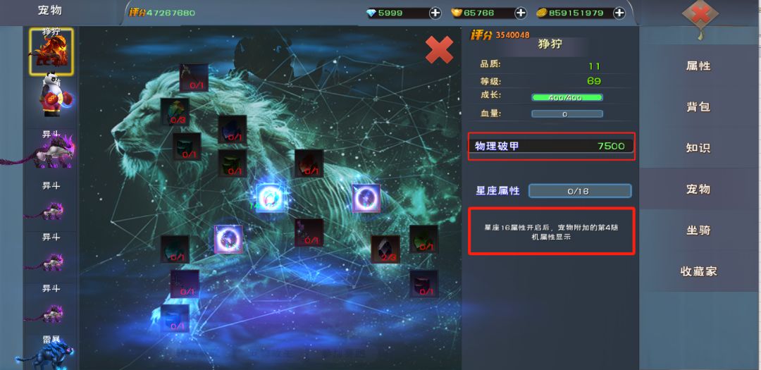 80级宠物+30物魔结晶+16星座的一些养成排行