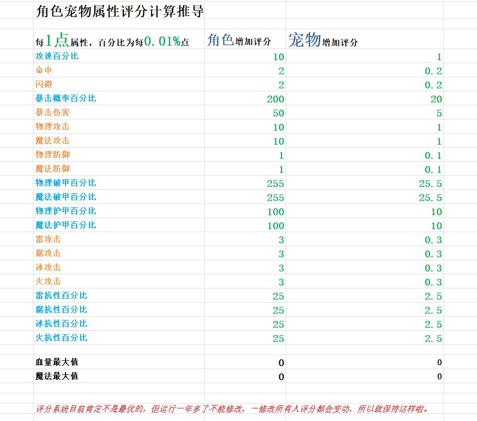 角色宠物属性评分计算推导