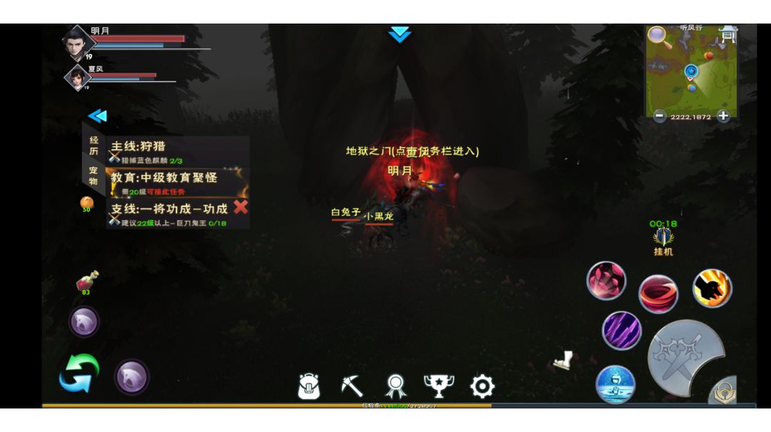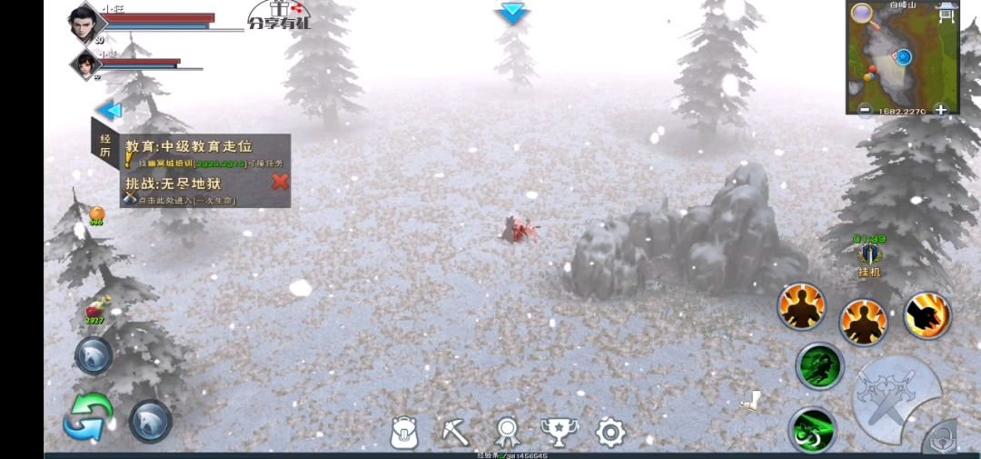 坐标1682,2270。技能45级定时1h有105万金币。三个技能等级要40+不然释放距离不够会漏怪。攻击到20w就可以刷。配置开到最高,其他设置调低减少卡顿。点击器设置我是名人堂外2150毫秒放技能,设备性能不一样仅参考,对照视频弄就好。