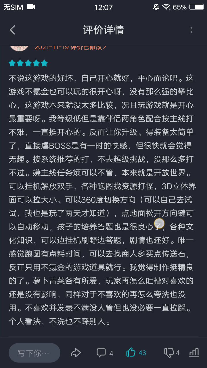 自己不喜欢就不玩,天瞎BB啥,自己不喜欢还不让别人喜欢了?别人喜欢多的就是水军?那个家伙天天恶意评价算什么?一款游戏有人喜欢就有人不喜欢,有喜欢的人就是花钱买水?游戏的热度和高评分大家有目共睹,除非某个家伙没长眼,没必要到处刷存在感呀网喷。