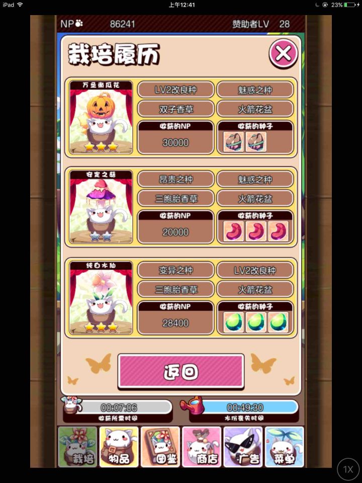 全图鉴达成,感谢各位小伙伴提供的情报,已整合在一起,配方不唯一,所以仅供参考。其实是全图鉴也还算简单,大致就是每种2个一起种,每种种子和改良种子一起(注意两只改良一起是随机的),但是这样成本很高。目前一共40种花,每5种一楼。